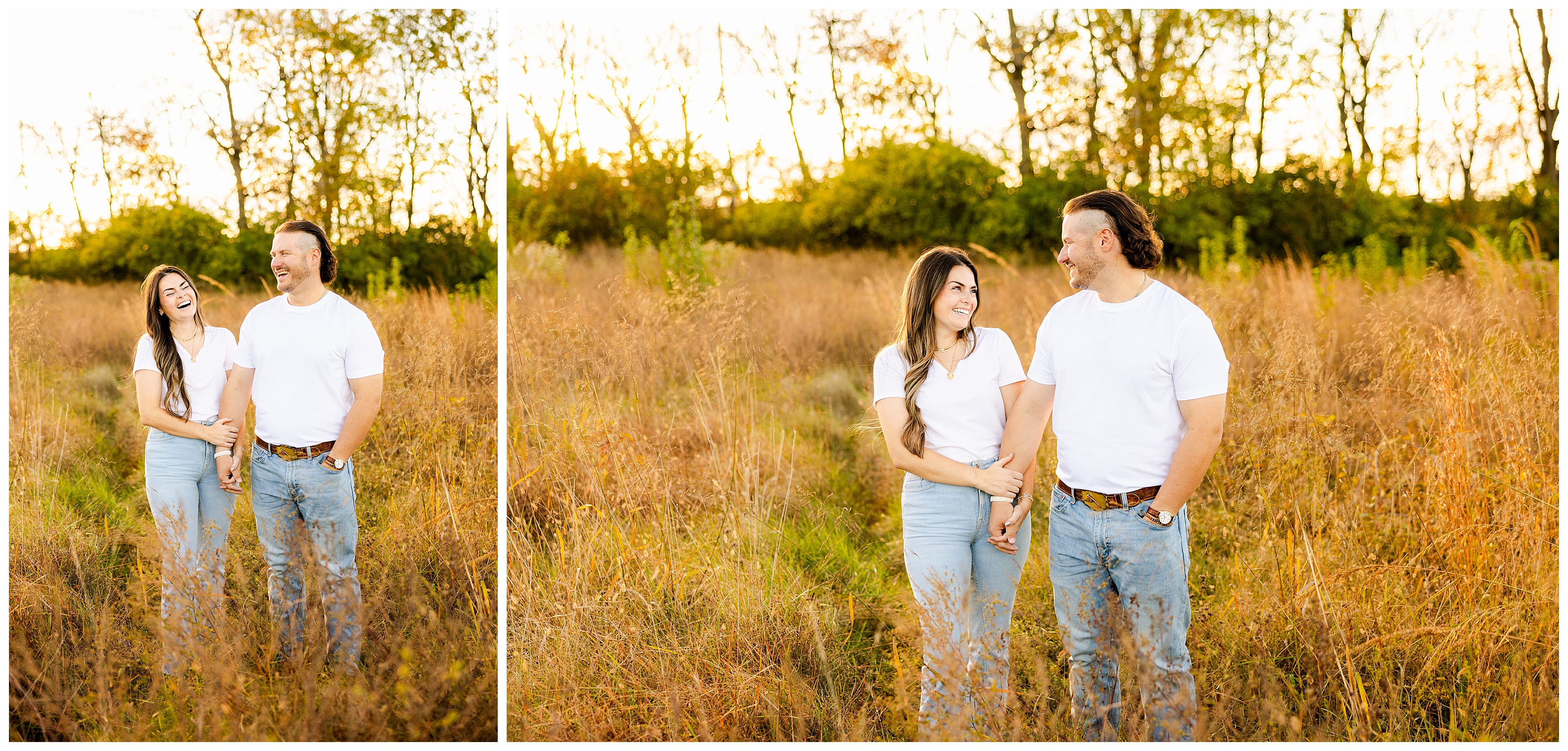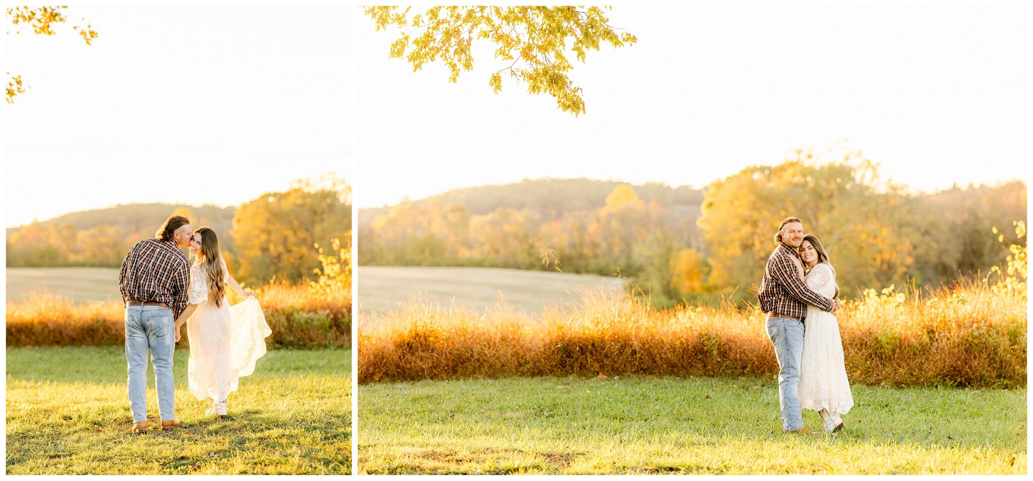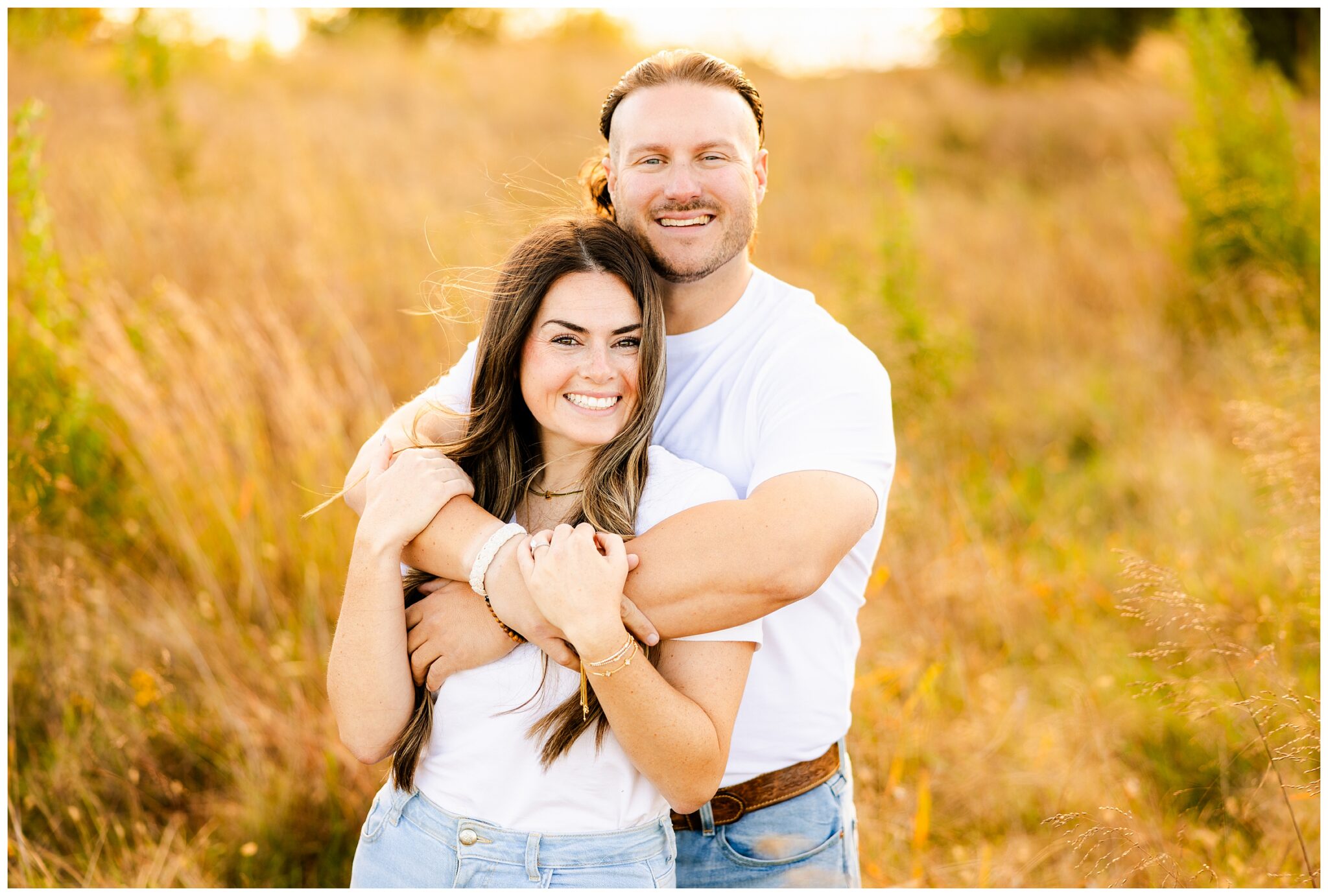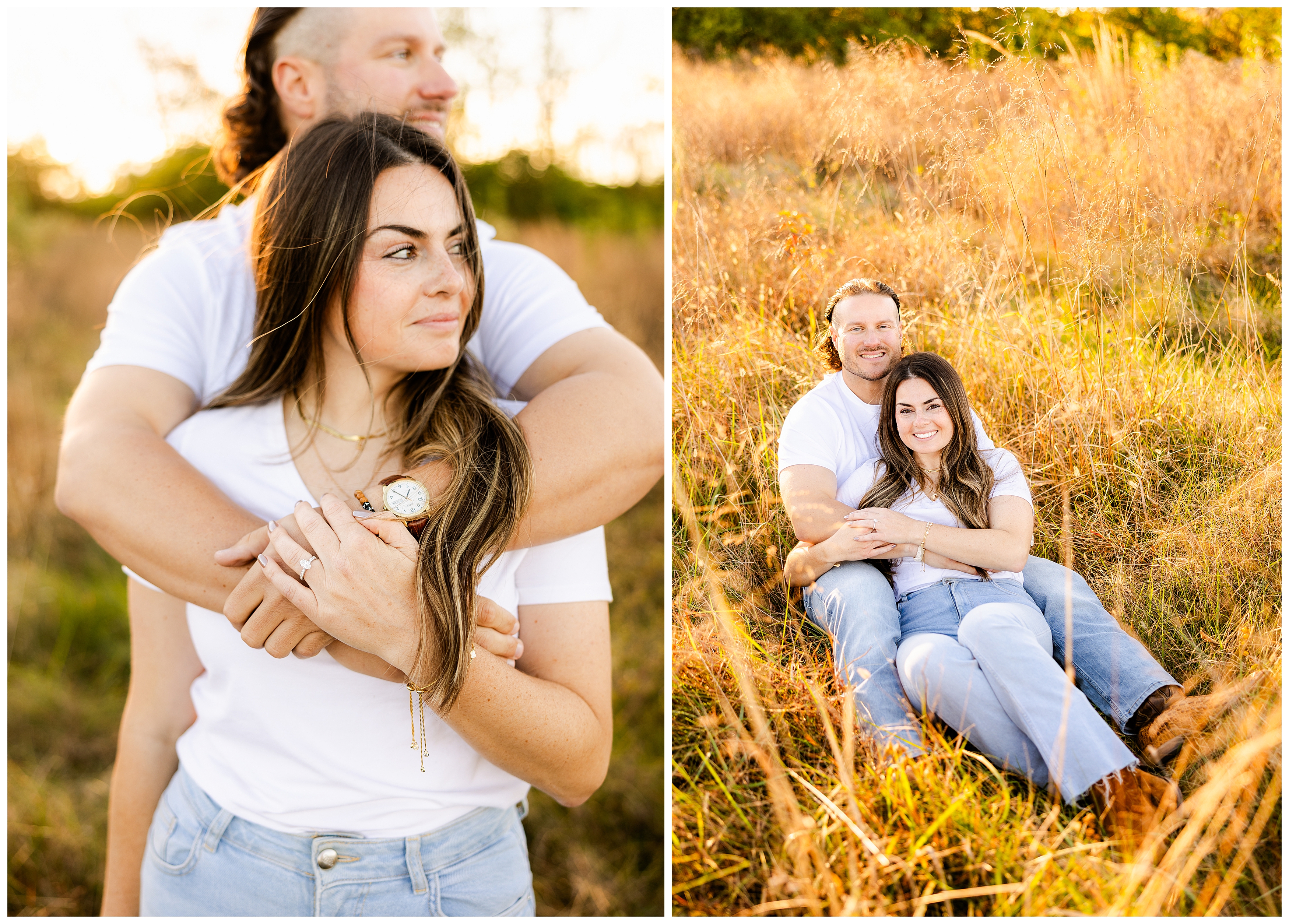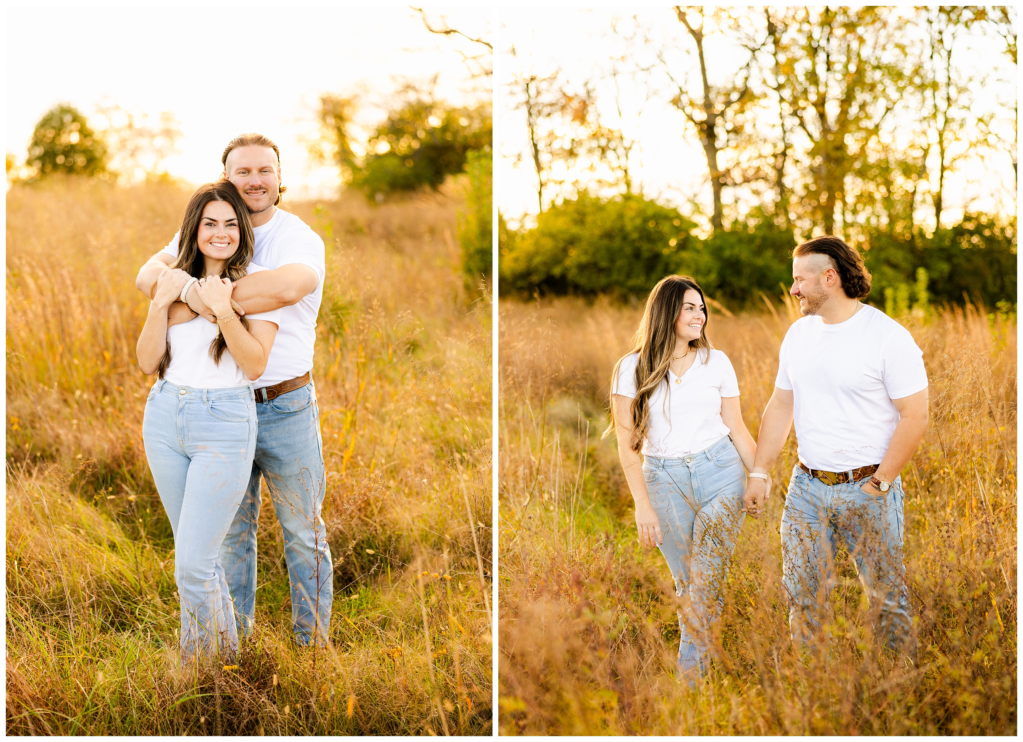 Leaning into a perfectly country vibe, Lou accessorized with his cowboy hat and they both wore boots that just felt effortlessly them. They started their session cuddling and laughing through the tall grass, completely playful and at ease with one another. They’re the kind of couple that feels genuine and down-to-earth from the moment you meet them — sweet, connected, and so clearly best friends. As golden hour deepened, we made our way to the tree Grace had fallen in love with, where the warm sunlight wrapped around them in the most romantic way.