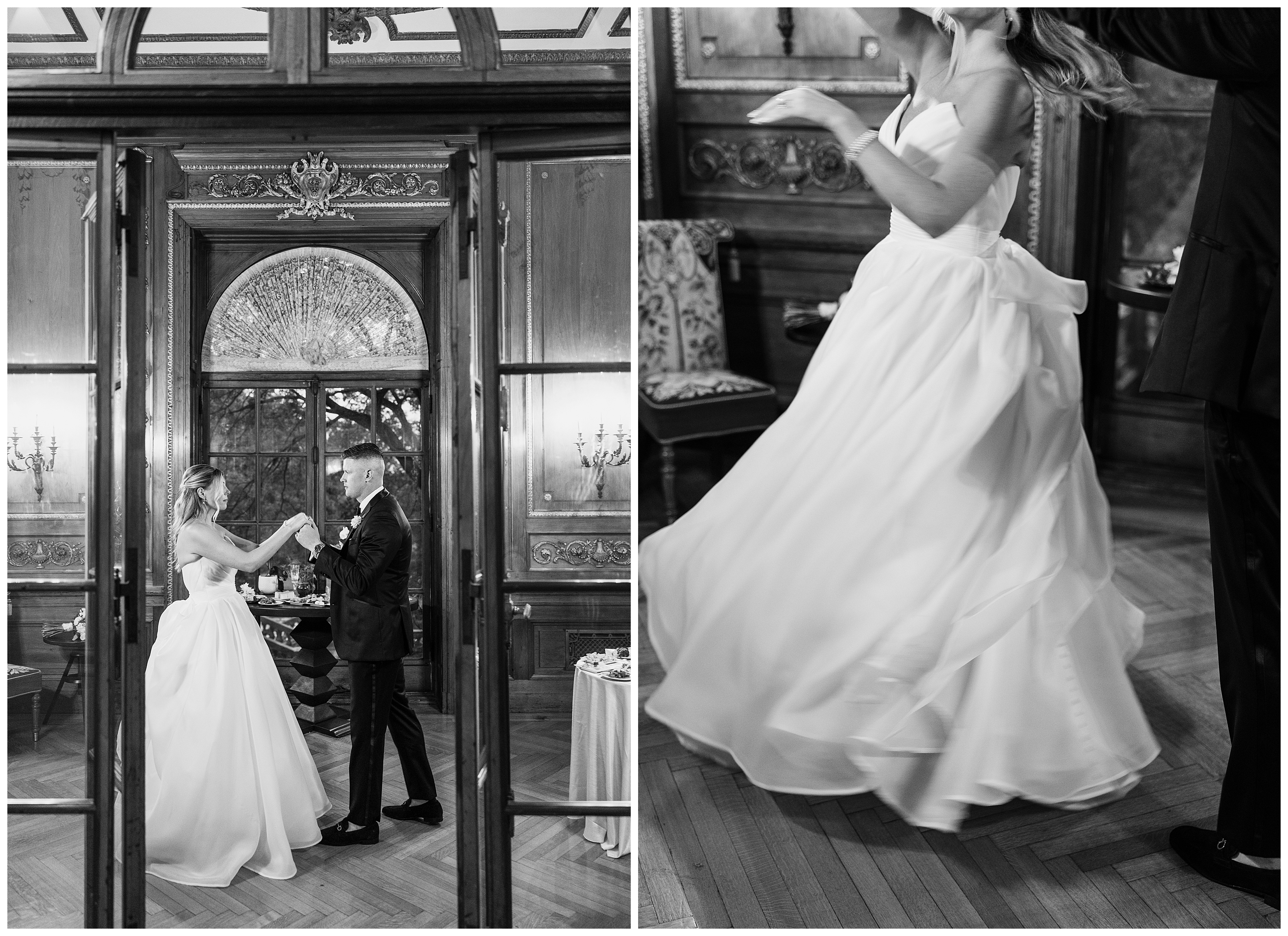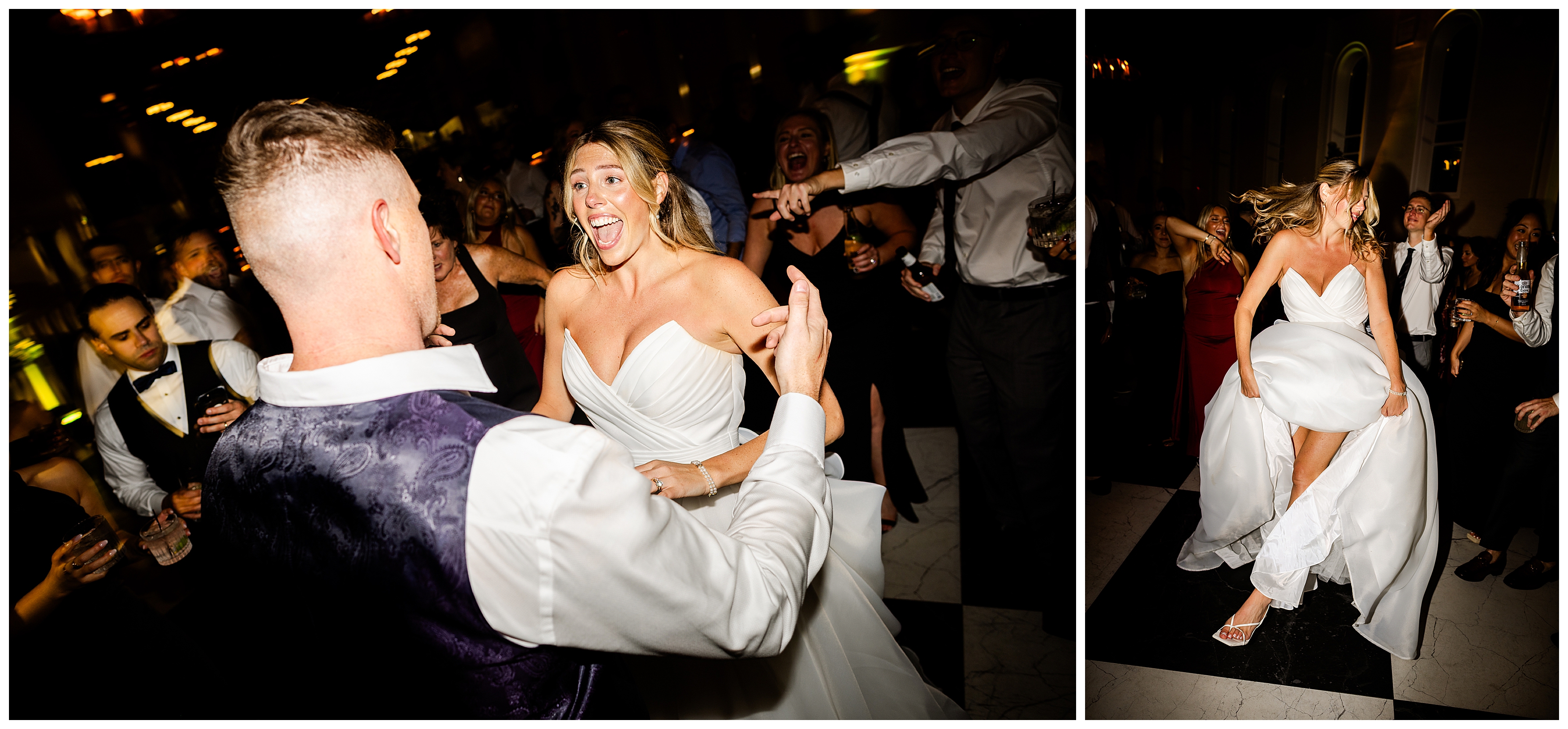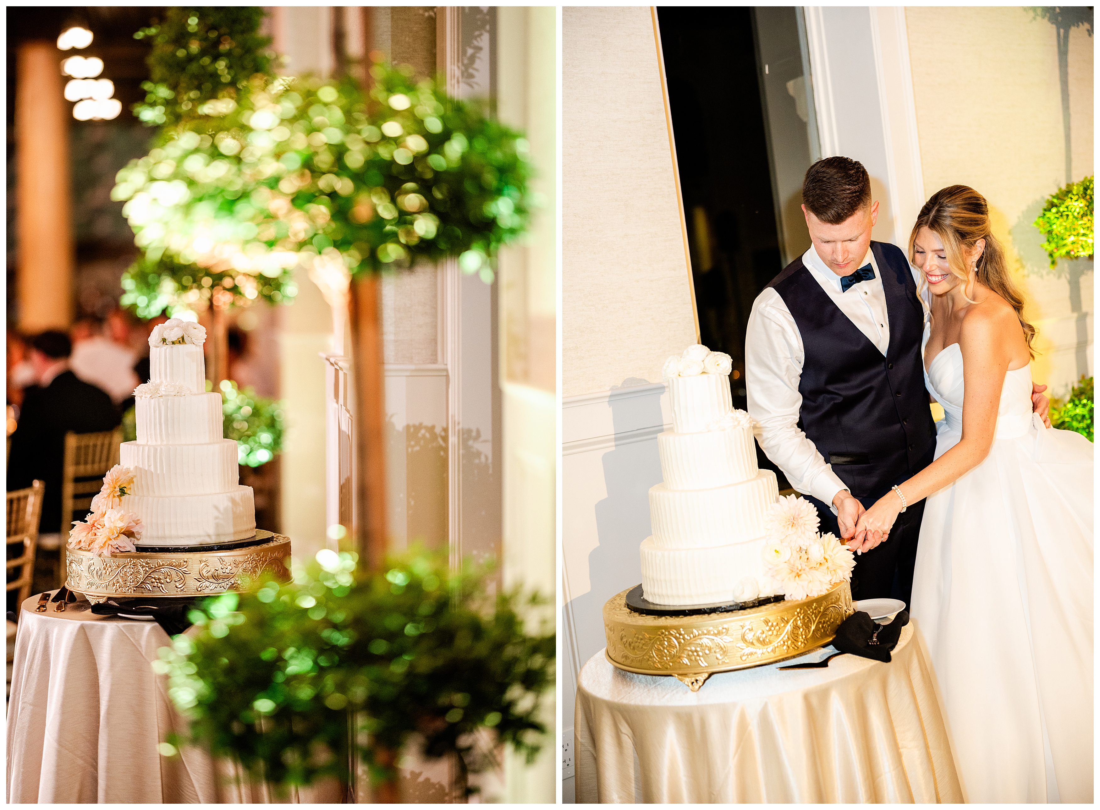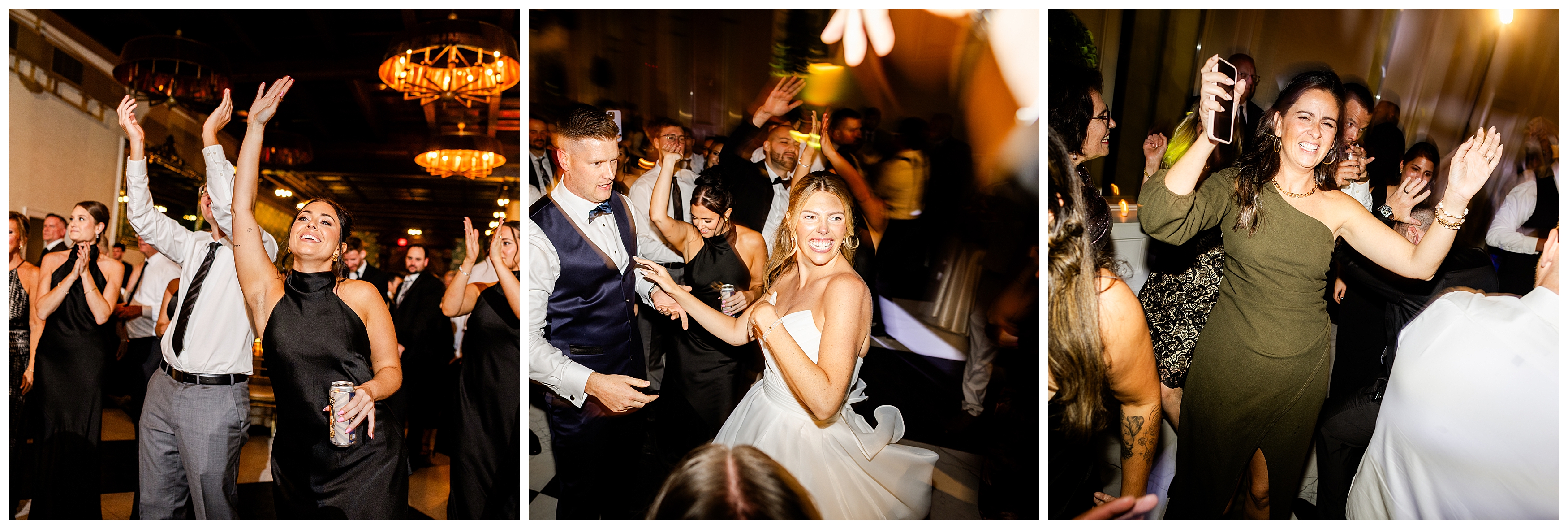 The reception was the perfect balance of chic sophistication and pure fun. Madison and Dan surprised everyone with a choreographed first dance that was both graceful and high-energy, setting the tone for an unforgettable night. With a live band filling the grand ballroom and guests packed onto the dance floor, their Elkins Estate wedding reception was vibrant, joyful, and full of life. It was a celebration that felt deeply personal yet undeniably elegant – what an honor to document the beginning of this next chapter in their lives as husband and wife!