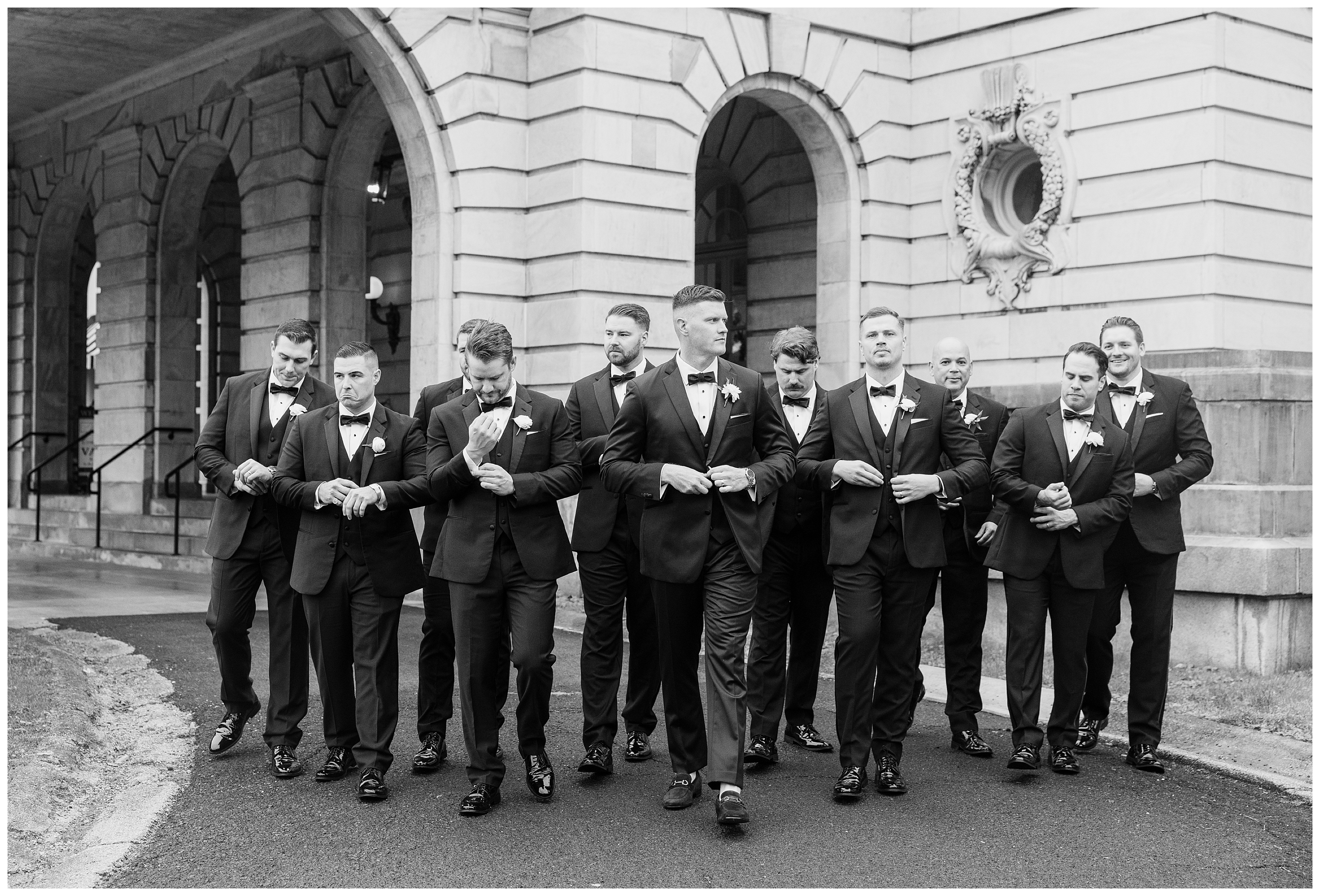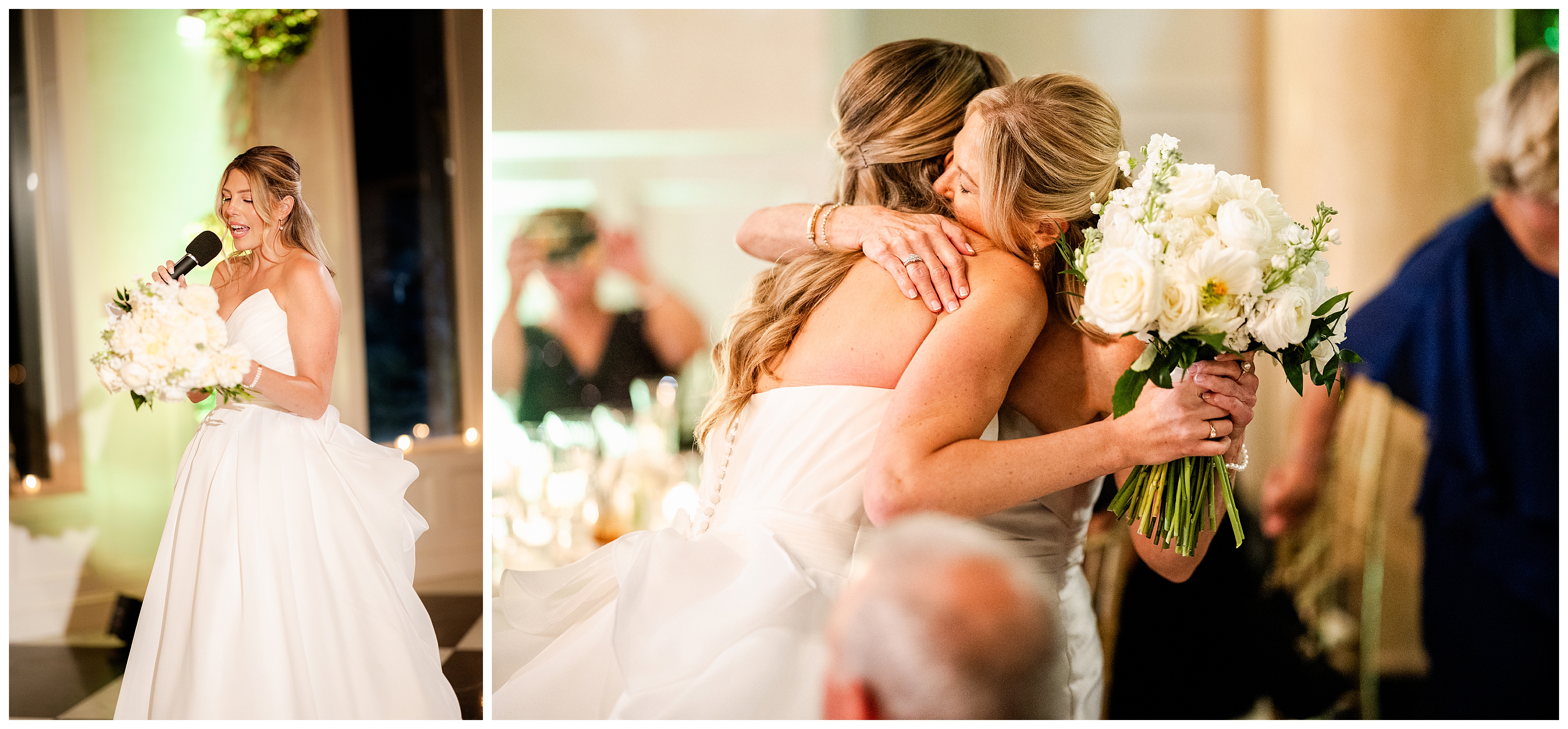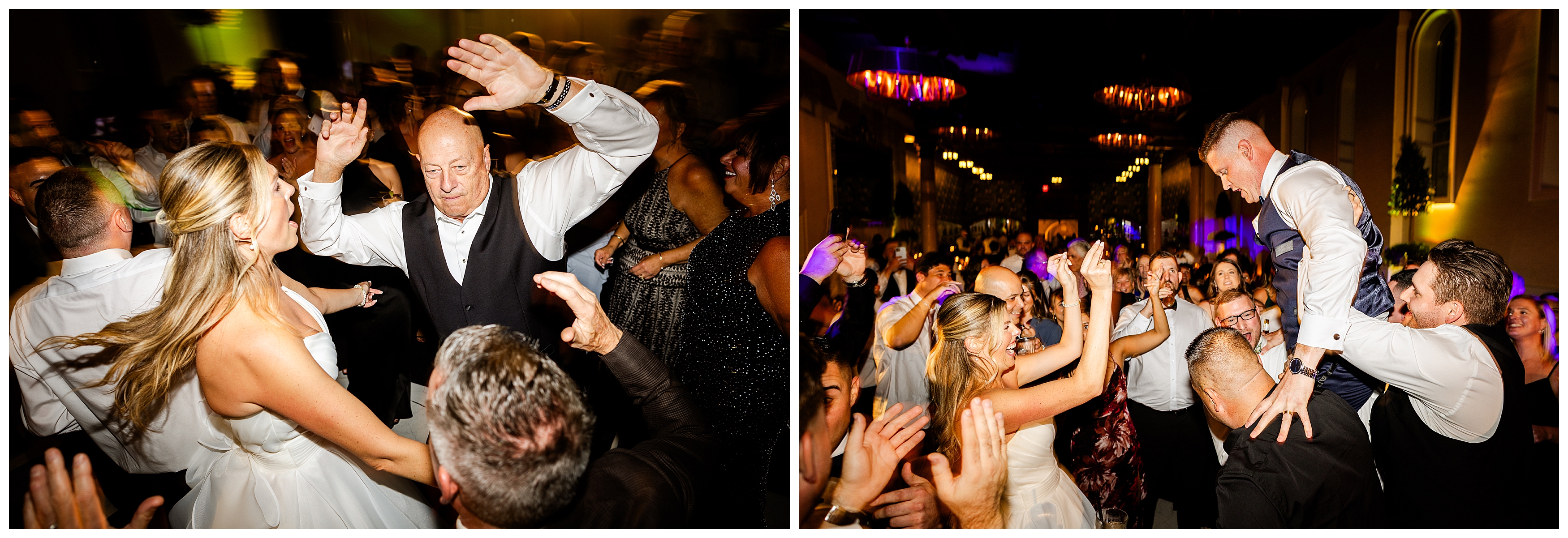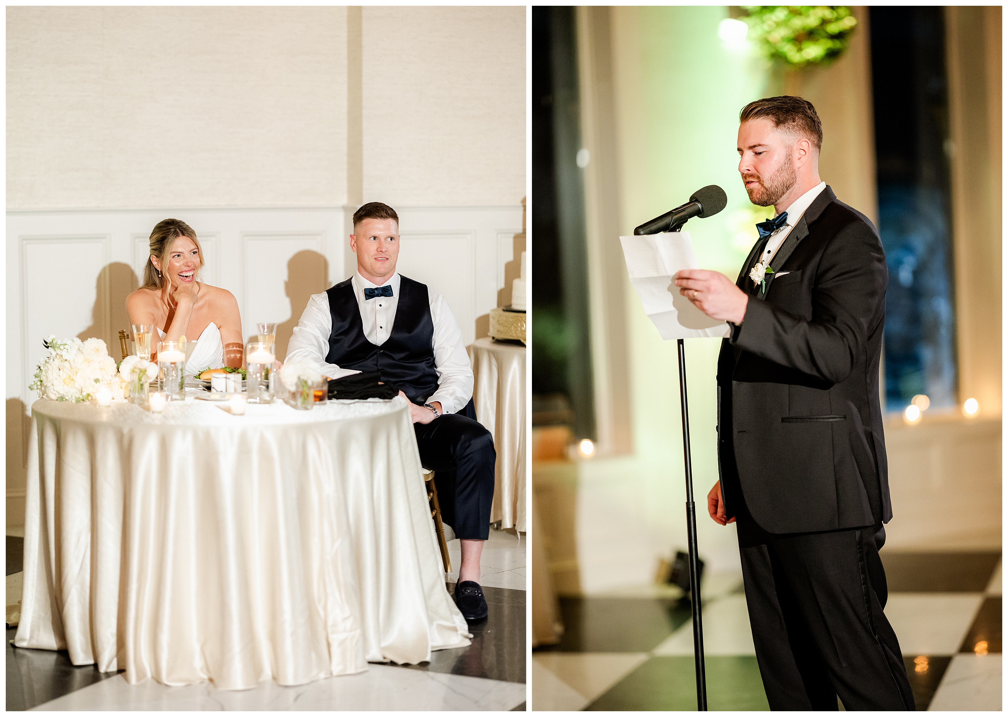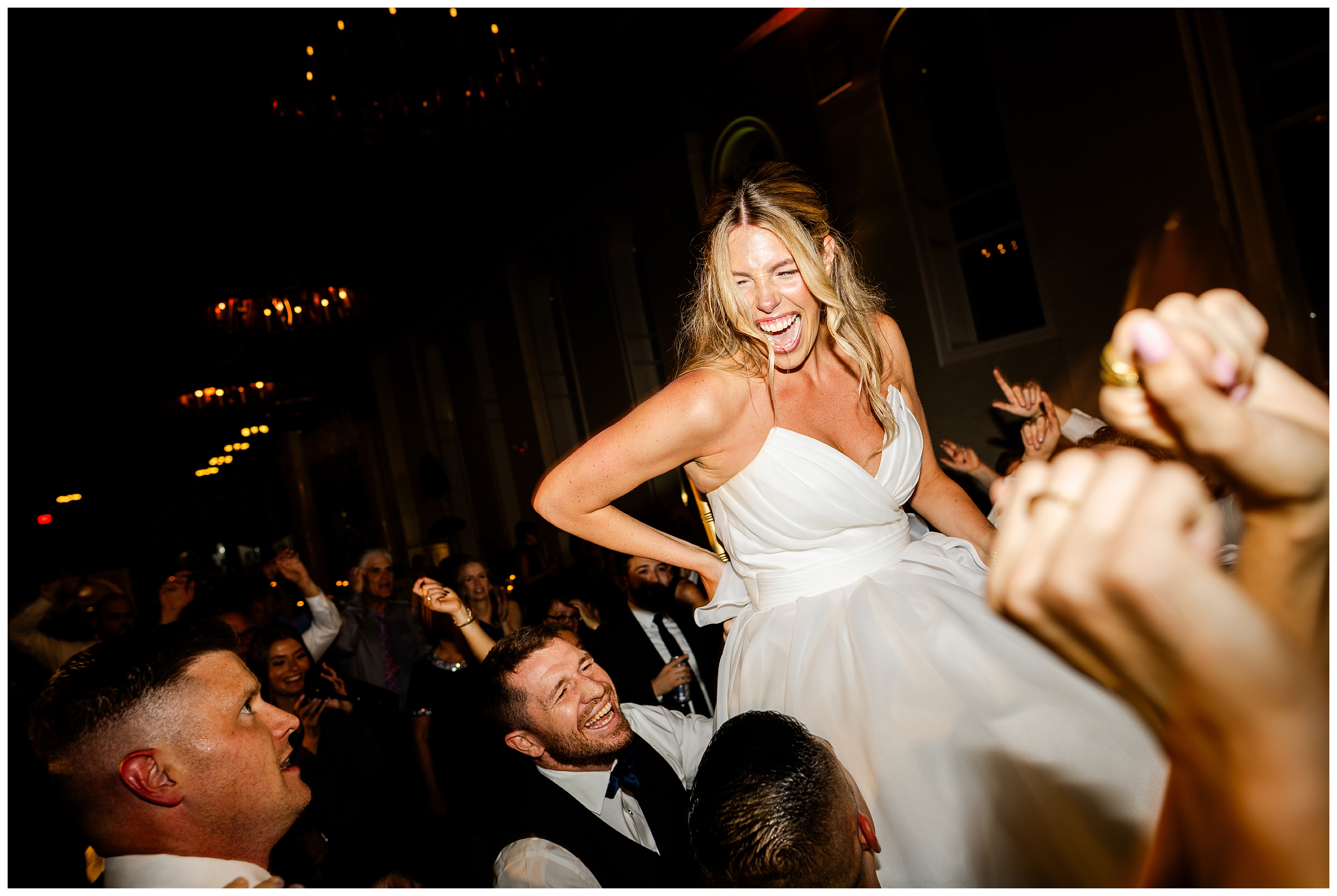 The reception was the perfect balance of chic sophistication and pure fun. Madison and Dan surprised everyone with a choreographed first dance that was both graceful and high-energy, setting the tone for an unforgettable night. With a live band filling the grand ballroom and guests packed onto the dance floor, their Elkins Estate wedding reception was vibrant, joyful, and full of life. It was a celebration that felt deeply personal yet undeniably elegant – what an honor to document the beginning of this next chapter in their lives as husband and wife!
