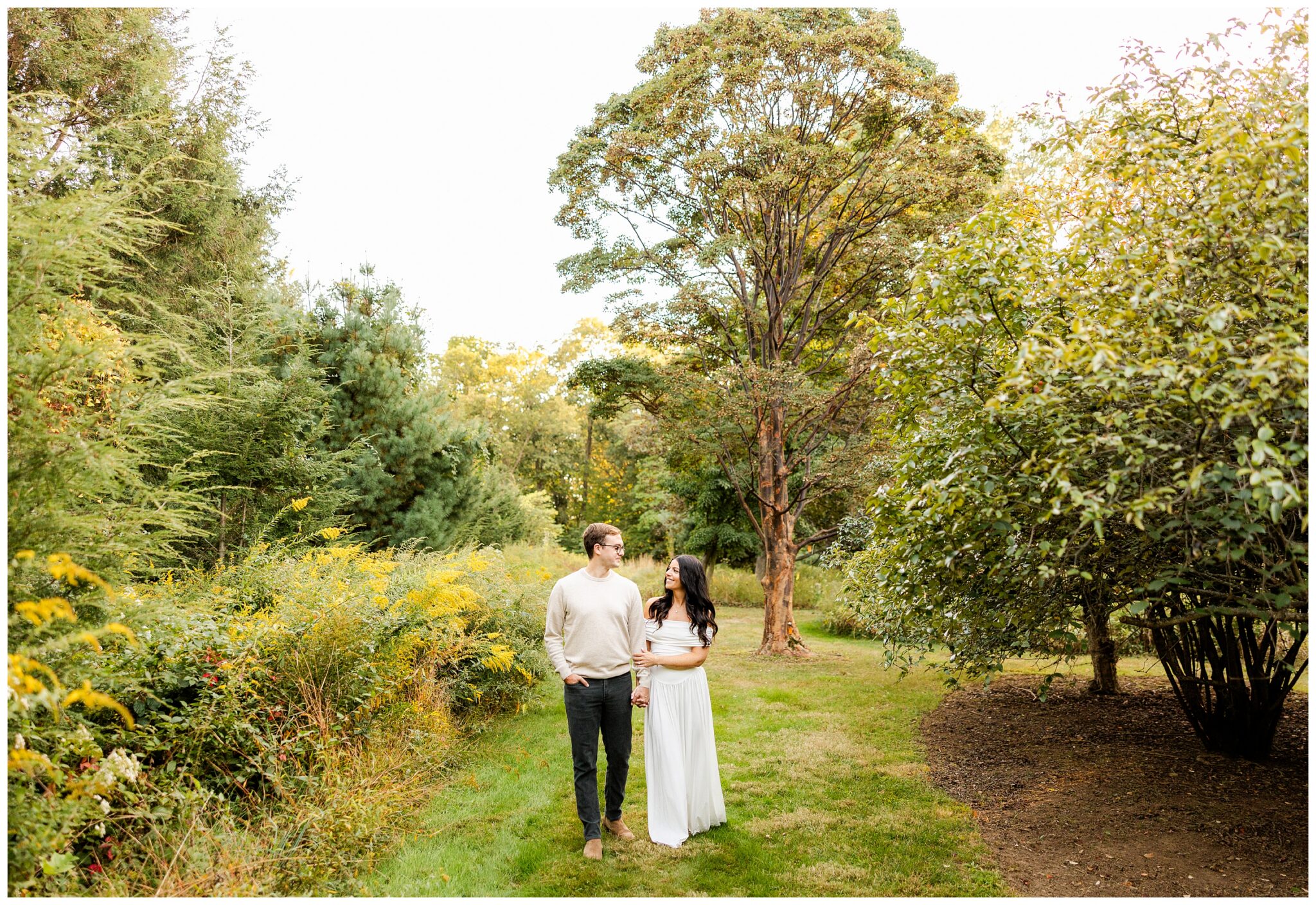 Brooke and Andy’s engagement session at Frelinghuysen Arboretum in Morristown, NJ was the definition of romantic and dreamy. Surrounded by wide open fields, tall grass, and towering trees, their session was just so wonderfully effortless and full of natural beauty. The golden light filtered through the branches as they wandered hand-in-hand, completely at ease with one another.