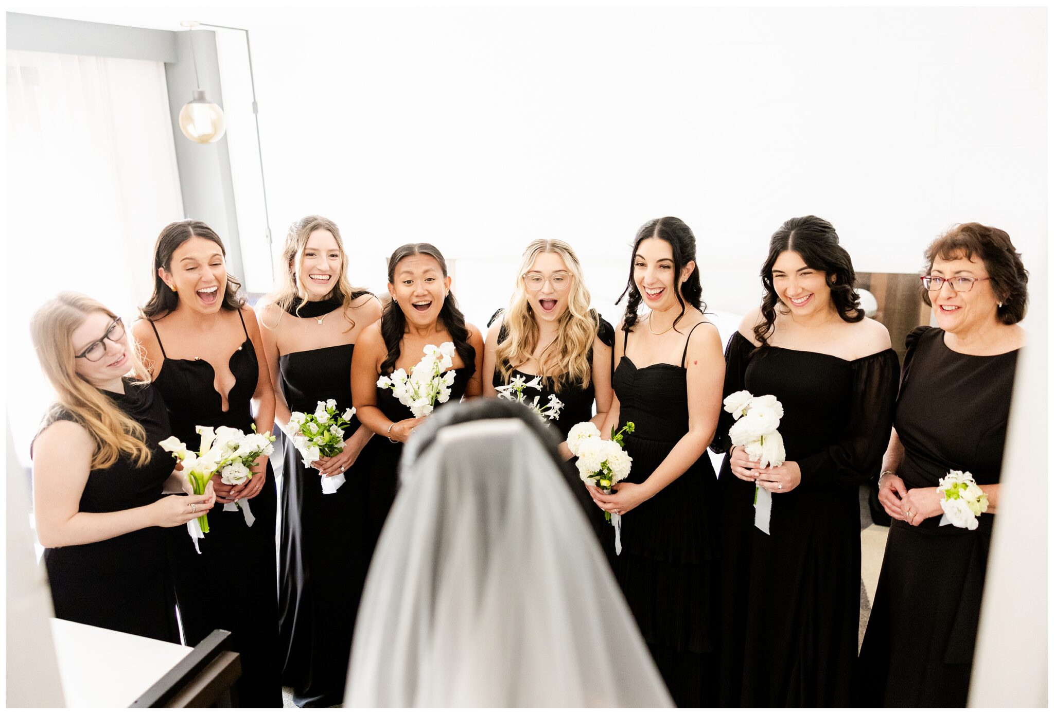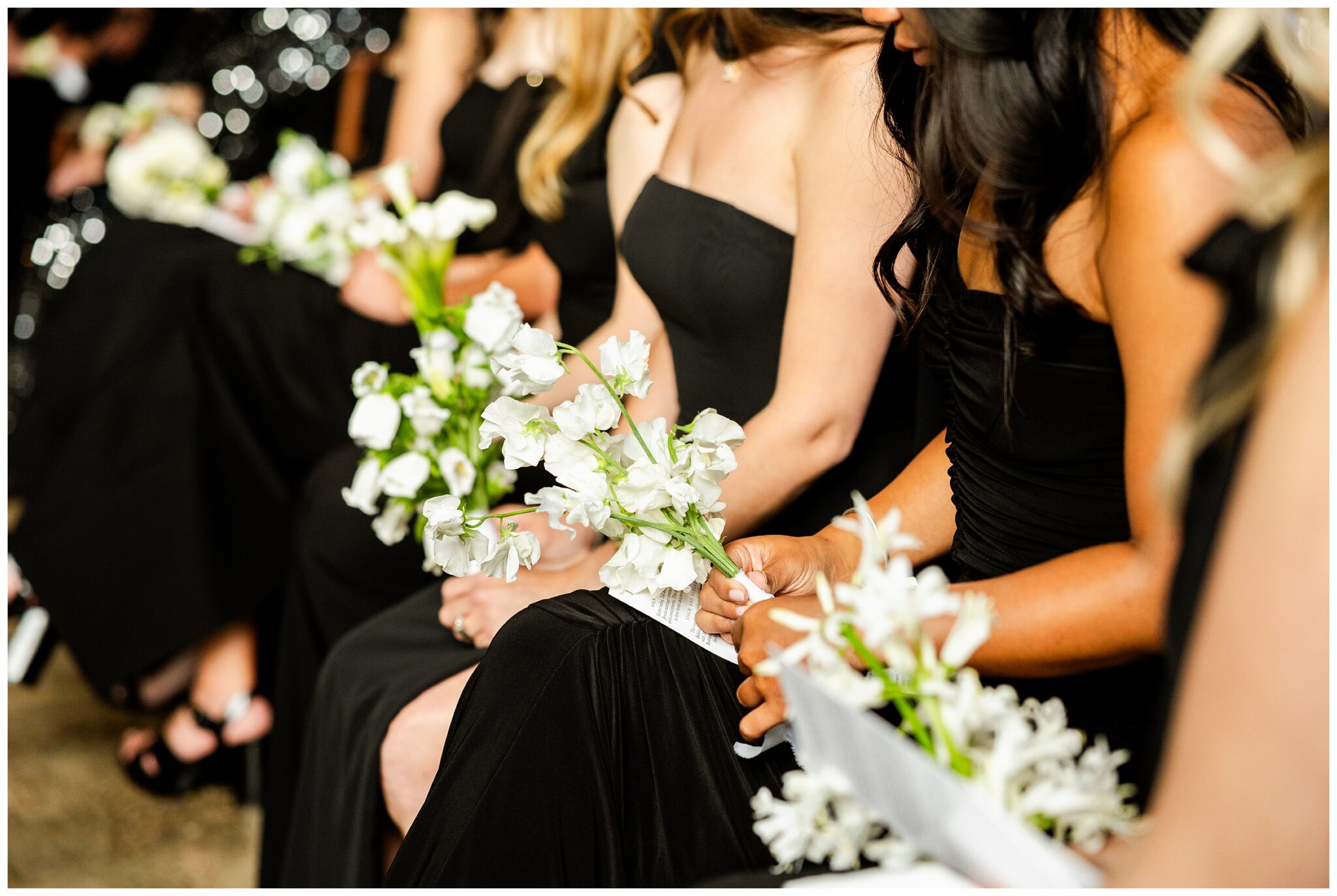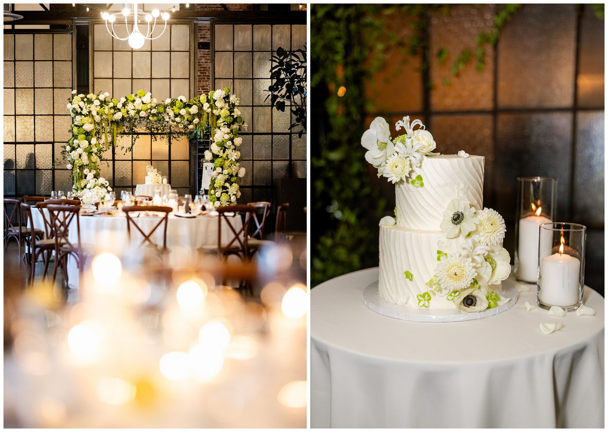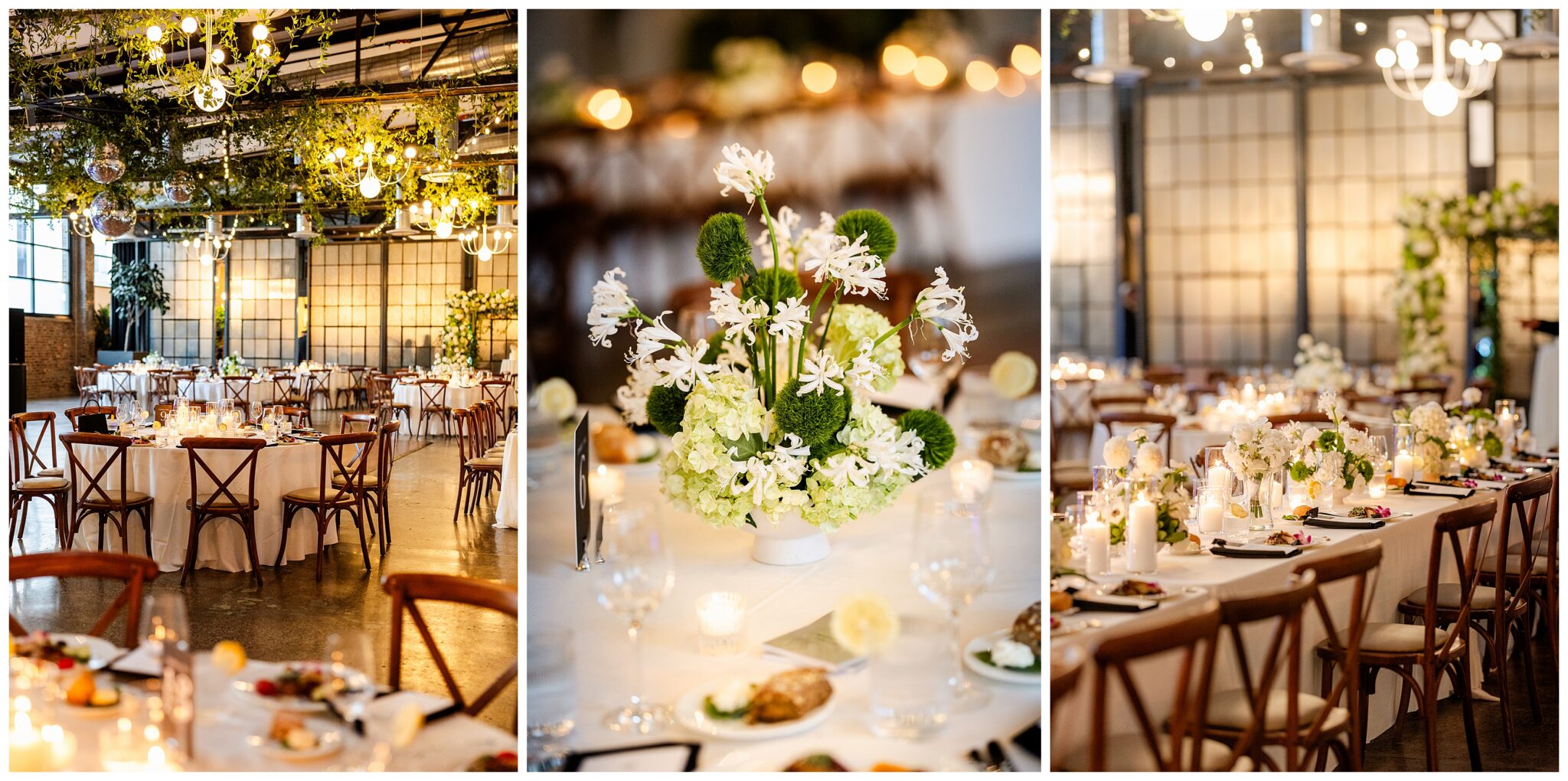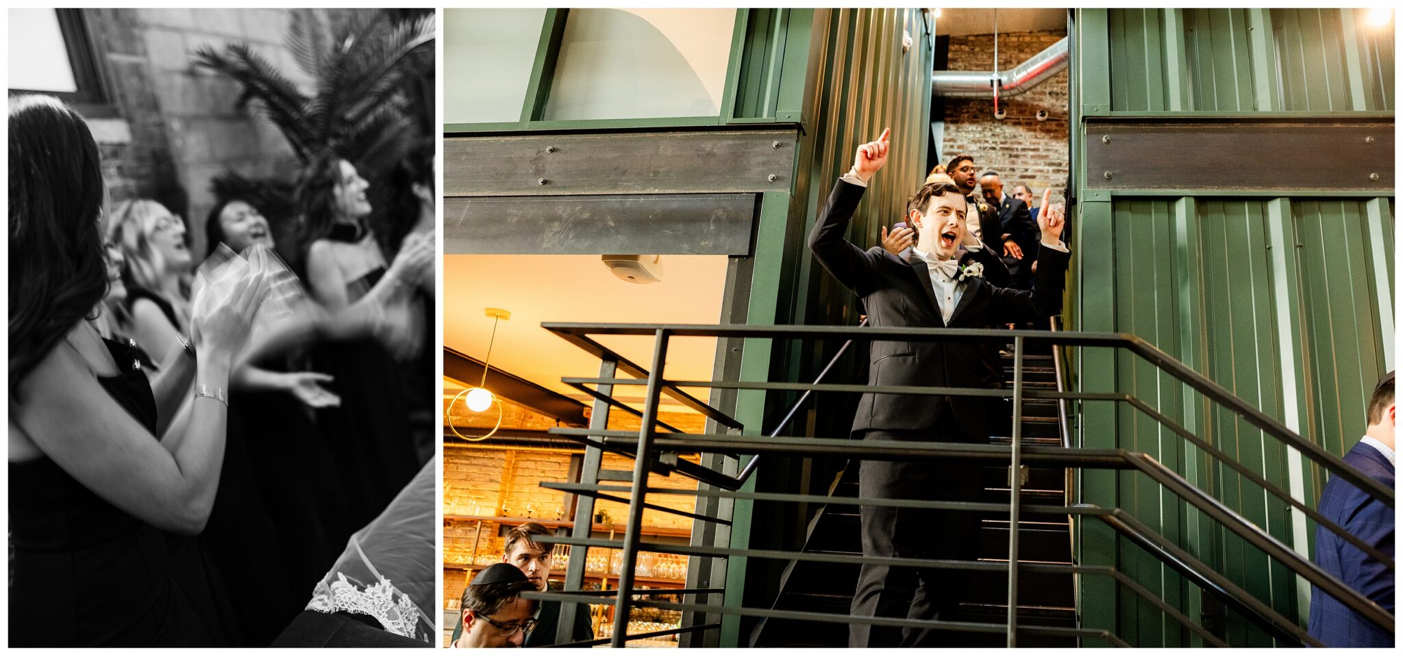 Their wedding beautifully honored Jewish traditions that added so much meaning to the day. Before the ceremony, Tali and Max signed the ketubah followed by family and friends gathered for the tish and bedekin. Celebration erupted from the loft as Tali was downstairs being greeted by guests surrounded by the mother’s grandmother’s, and her bridesmeaids. It culminated in an energectic moment of dance as Max came down from the loft to greet Tali in a touching moment where he lowered her veil and whisker her away to their beautiful ceremony. Later in the evening, Tali and Max pulled open the doors to the reception and invited guests into the space where the dance floor erupted for the hora, with guests lifting Tali and Max in chairs while everyone danced in joyful circles around them. One of the most delightful traditions that followed was a mezinke moment where the couple sat and guests performed playful dances to entertain them — an incredibly fun and lighthearted way to celebrate the newlyweds.
