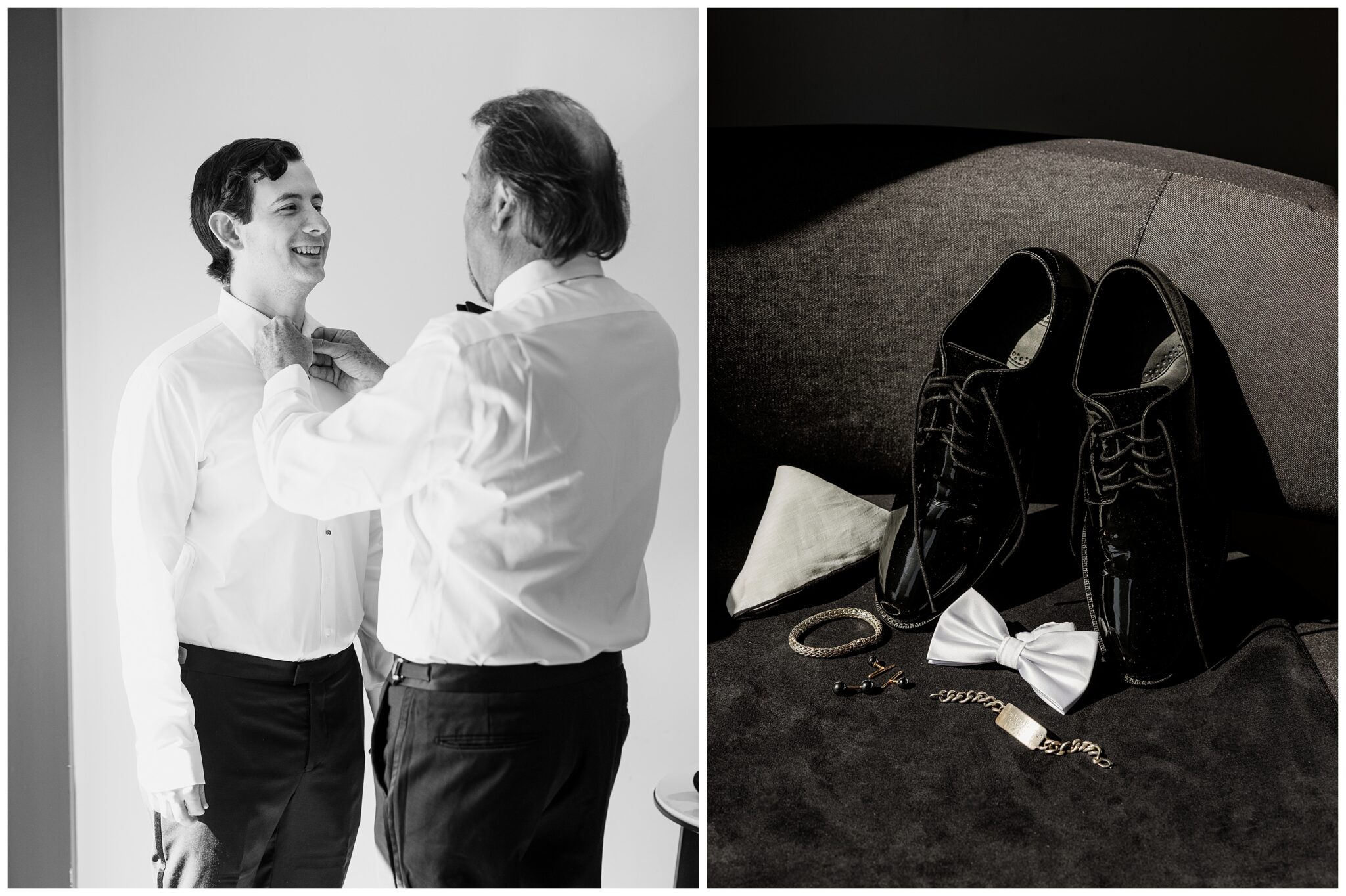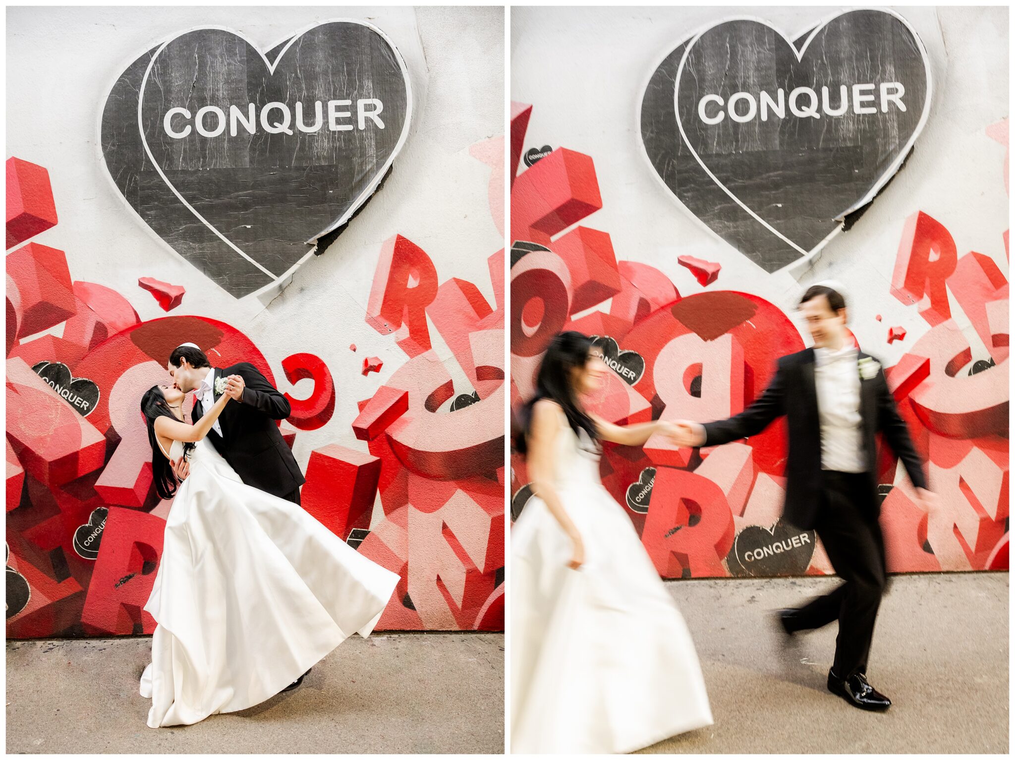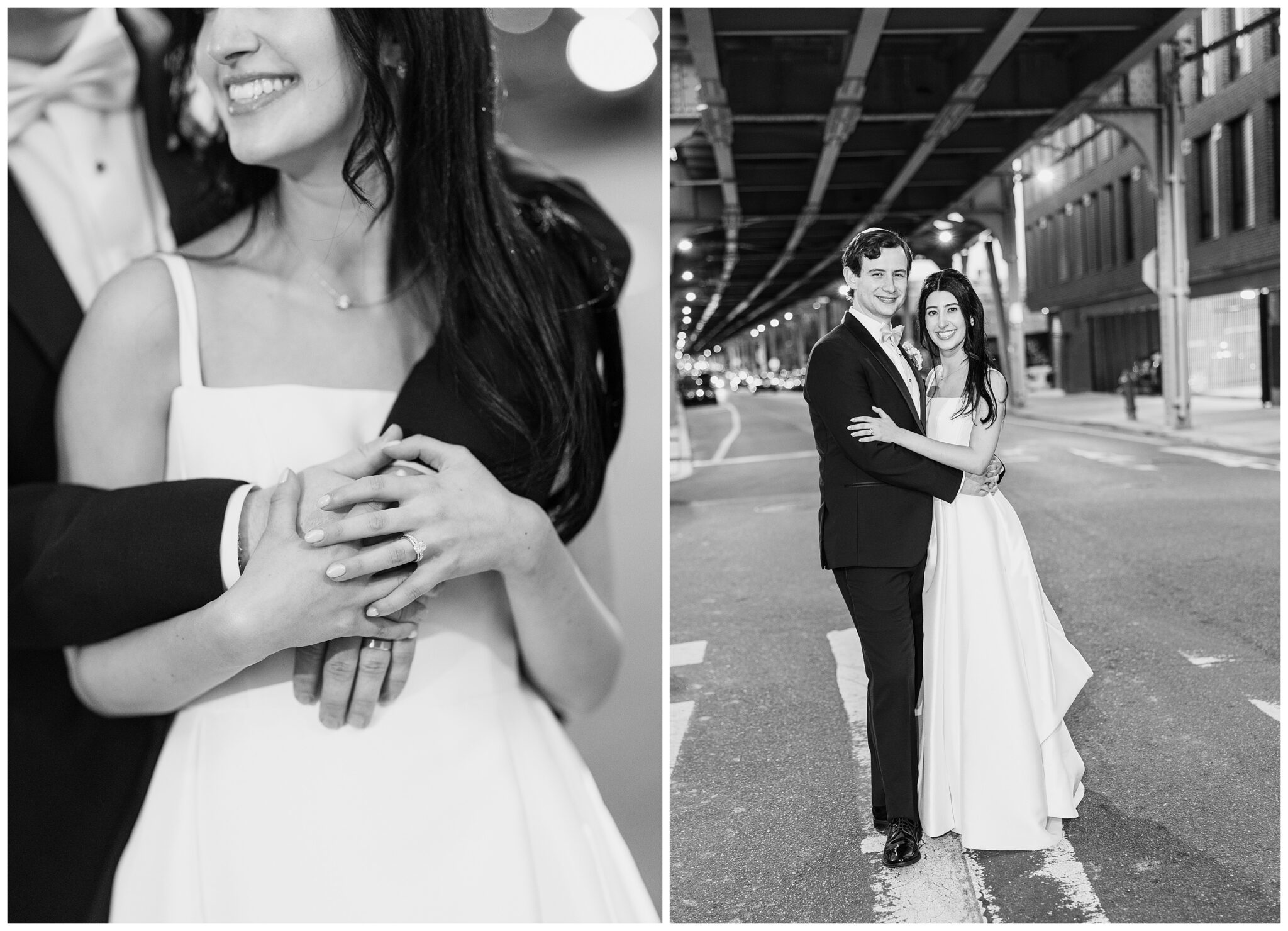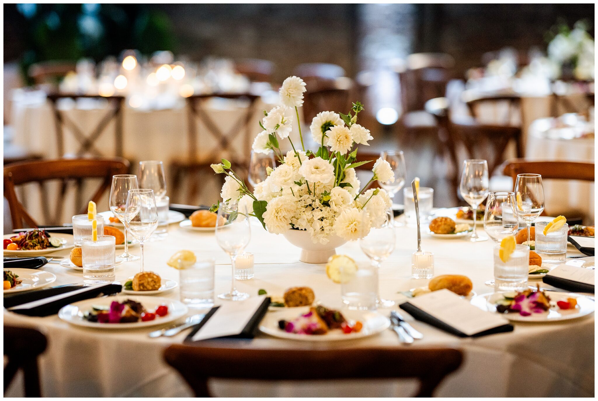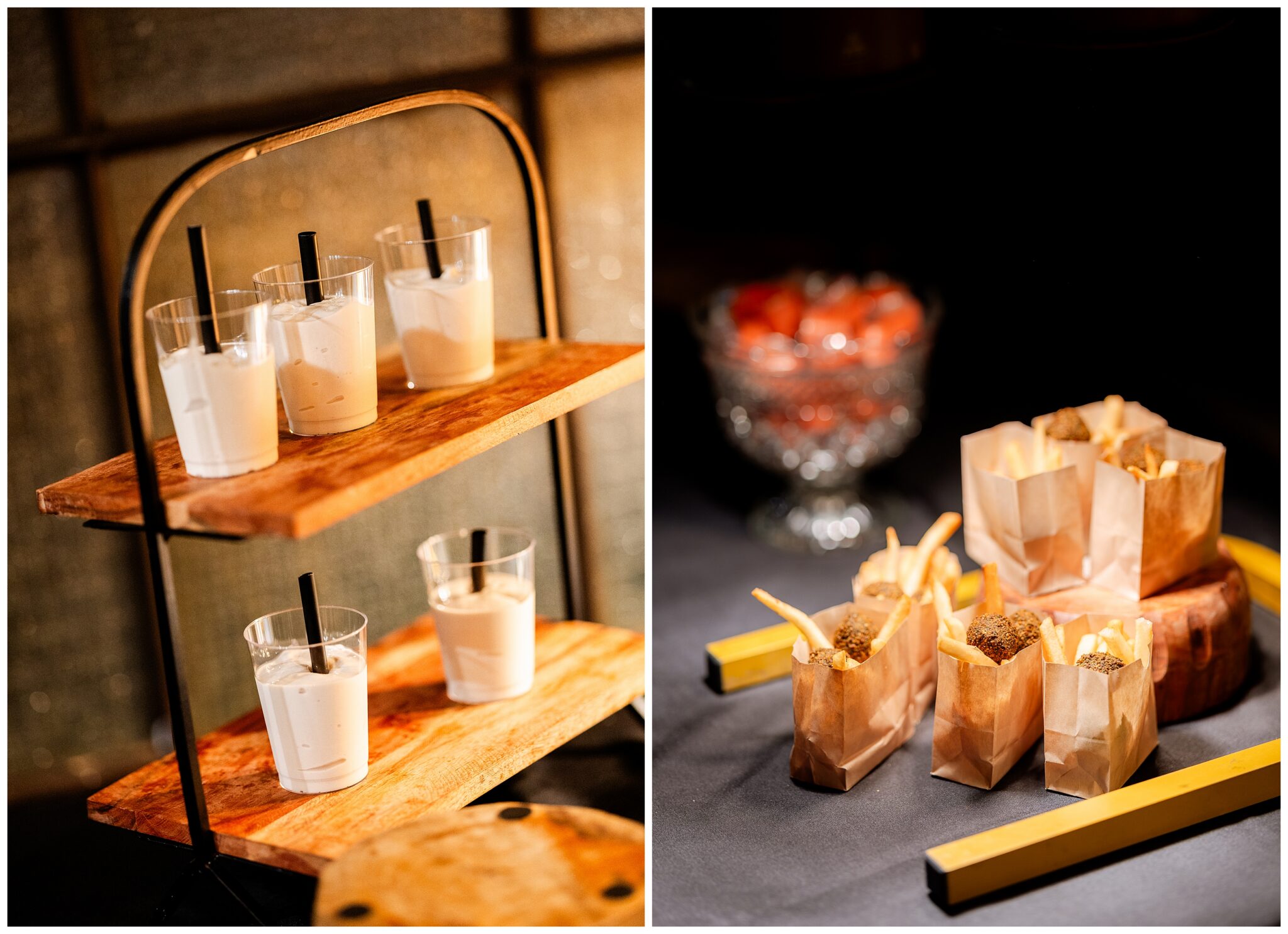 Their wedding beautifully honored Jewish traditions that added so much meaning to the day. Before the ceremony, Tali and Max signed the ketubah followed by family and friends gathered for the tish and bedekin. Celebration erupted from the loft as Tali was downstairs being greeted by guests surrounded by the mother’s grandmother’s, and her bridesmeaids. It culminated in an energectic moment of dance as Max came down from the loft to greet Tali in a touching moment where he lowered her veil and whisker her away to their beautiful ceremony. Later in the evening, Tali and Max pulled open the doors to the reception and invited guests into the space where the dance floor erupted for the hora, with guests lifting Tali and Max in chairs while everyone danced in joyful circles around them. One of the most delightful traditions that followed was a mezinke moment where the couple sat and guests performed playful dances to entertain them — an incredibly fun and lighthearted way to celebrate the newlyweds.