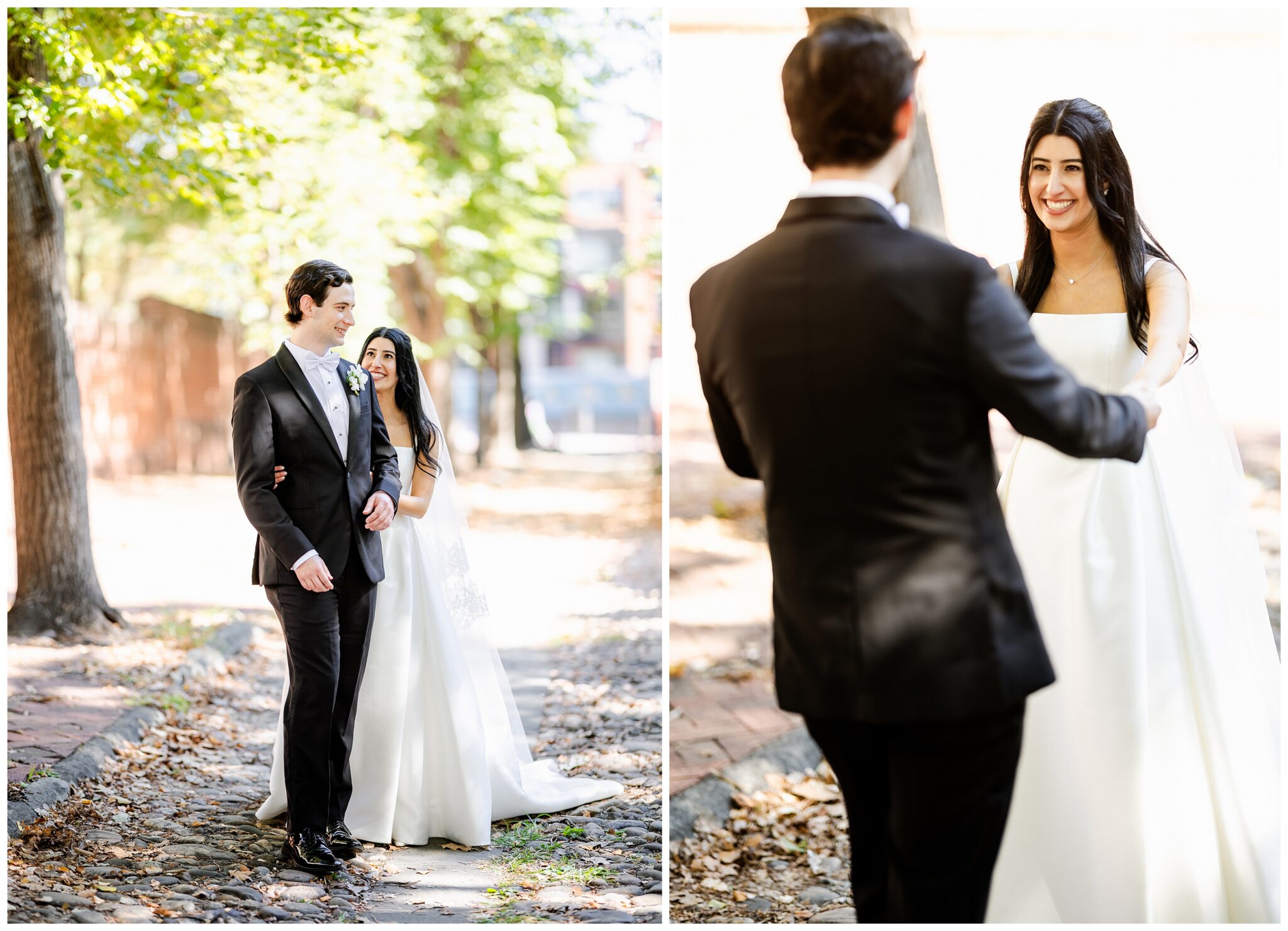 Tali and Max’s wedding day was a joyful, tradition-filled celebration in the heart of Philadelphia. Their day began with portraits and a beautiful first look in Old City, Philadelphia, where cobblestone streets and historic architecture created the perfect backdrop for their romantic portraits. Surrounded by their incredibly supportive bridal party, Tali and Max were all smiles — the kind of couple whose sweetness and genuine connection is felt by everyone around them. From there, the celebration moved to Lilah in Fishtown, a restaurant known for its incredible Israeli-inspired cuisine and vibrant atmosphere.
