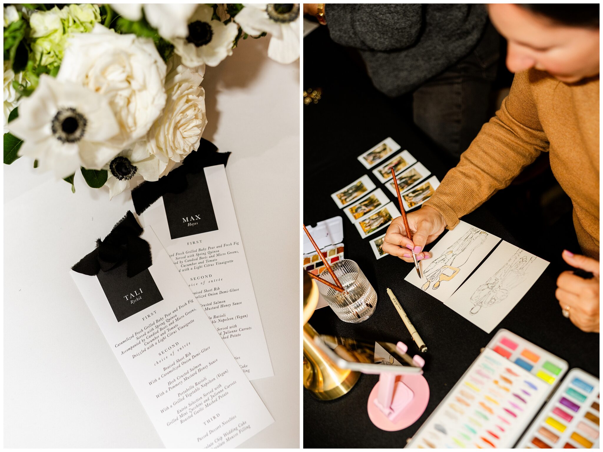 The evening was full of thoughtful details and unforgettable moments. Lush florals filled the space, and guests enjoyed live guest illustrations created by a painter as unique wedding favors. Lilah surprised guests with late-night falafel and milkshakes from Goldie, and after an outfit change that brought a whole new energy to the dance floor, Tali and Max closed out the night in the most iconic way — dancing to Love Story as Max dropped down on one knee again while the crowd cheered around them. Such an unforgettable celebration for this sweet couple.