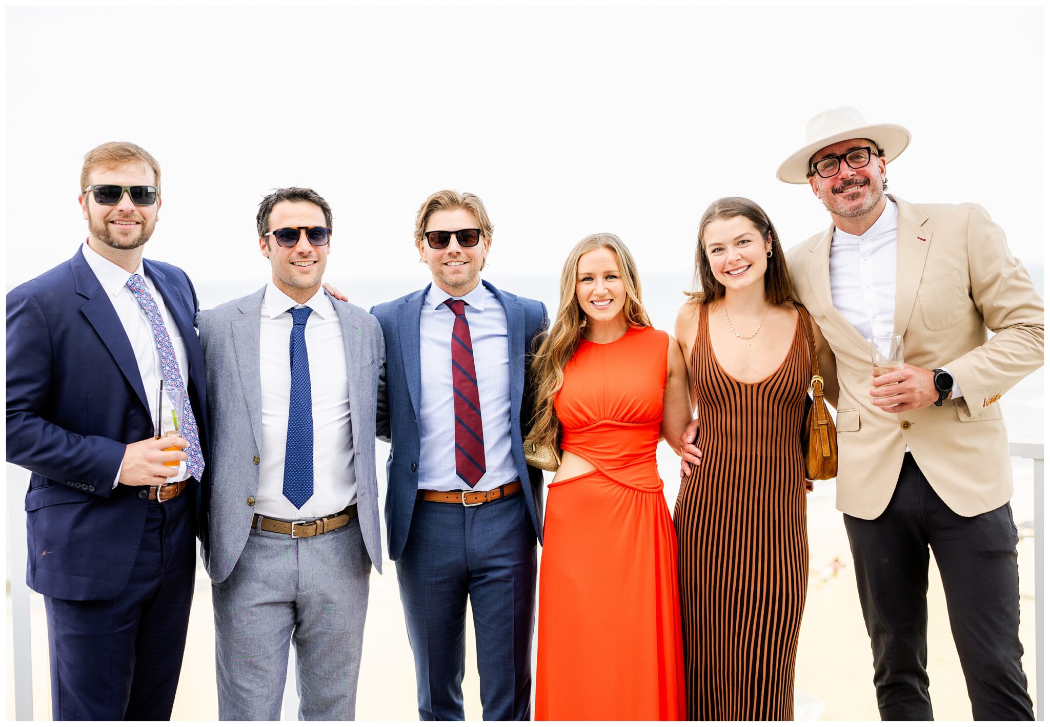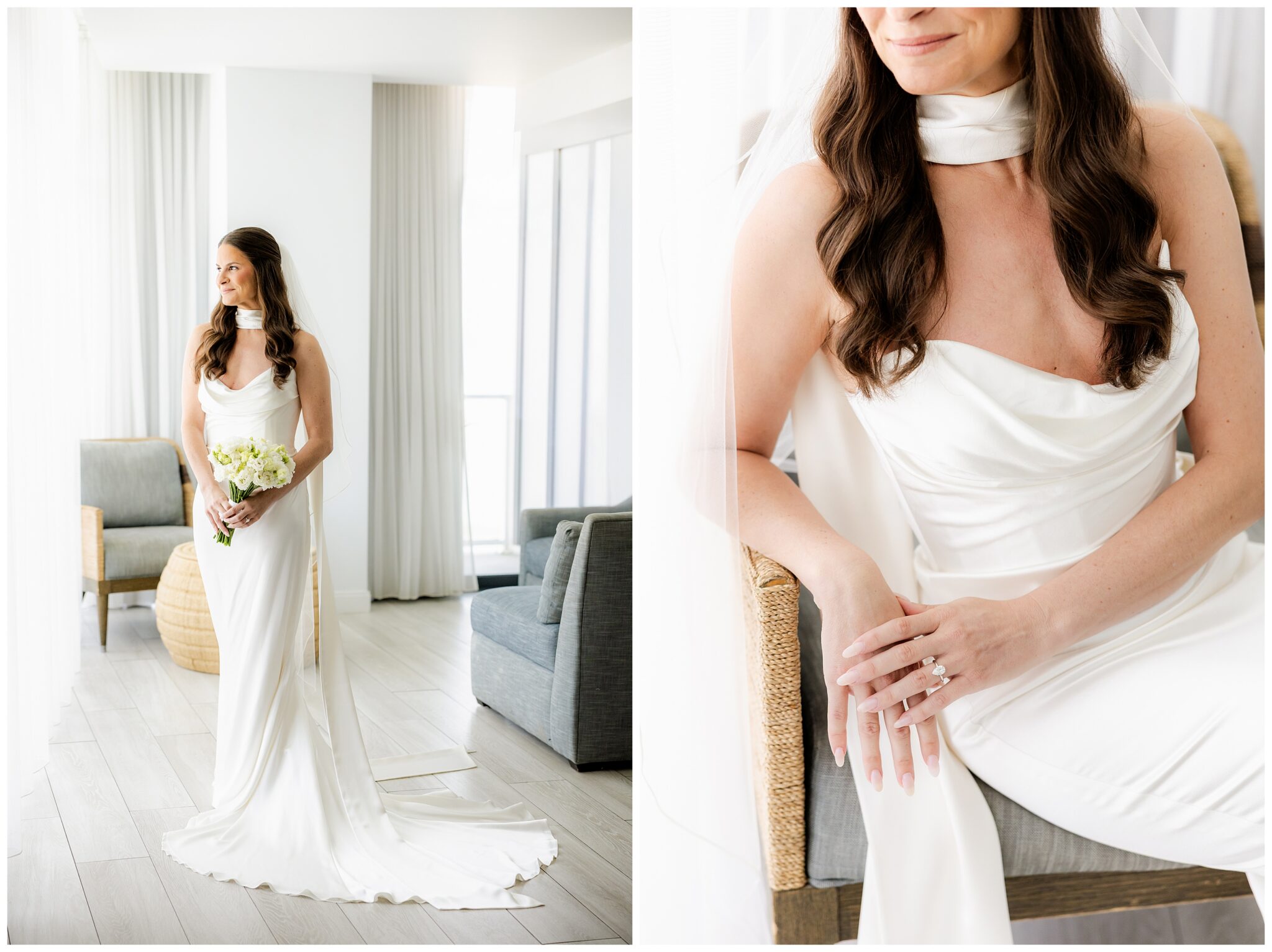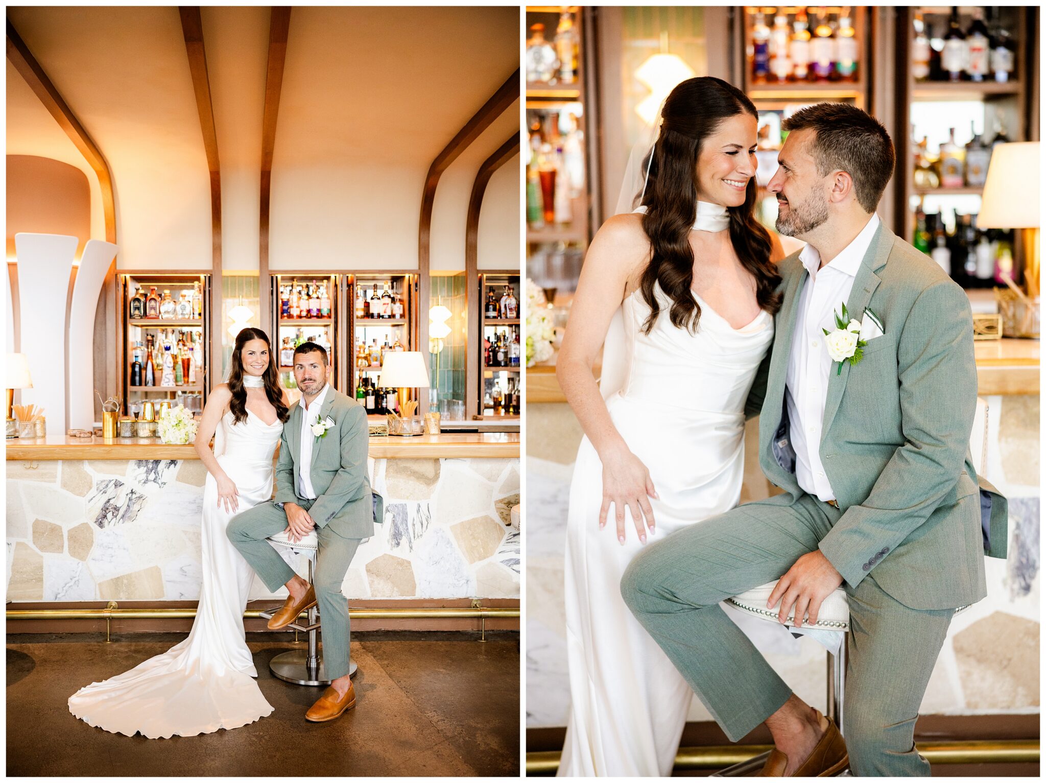The design and style of the day perfectly matched the setting. Brian’s linen suit felt effortlessly coastal and elevated, while Caroline stunned in a sleek bridal look before changing into a chic second dress just before cake cutting. We captured so many of their portraits at the resort’s signature bar — a space with a fun, Miami-inspired feel that couldn’t have been more “them.” From the oceanfront views to the modern design, this Long Branch, NJ beach wedding was the perfect blend of relaxed and celebratory.