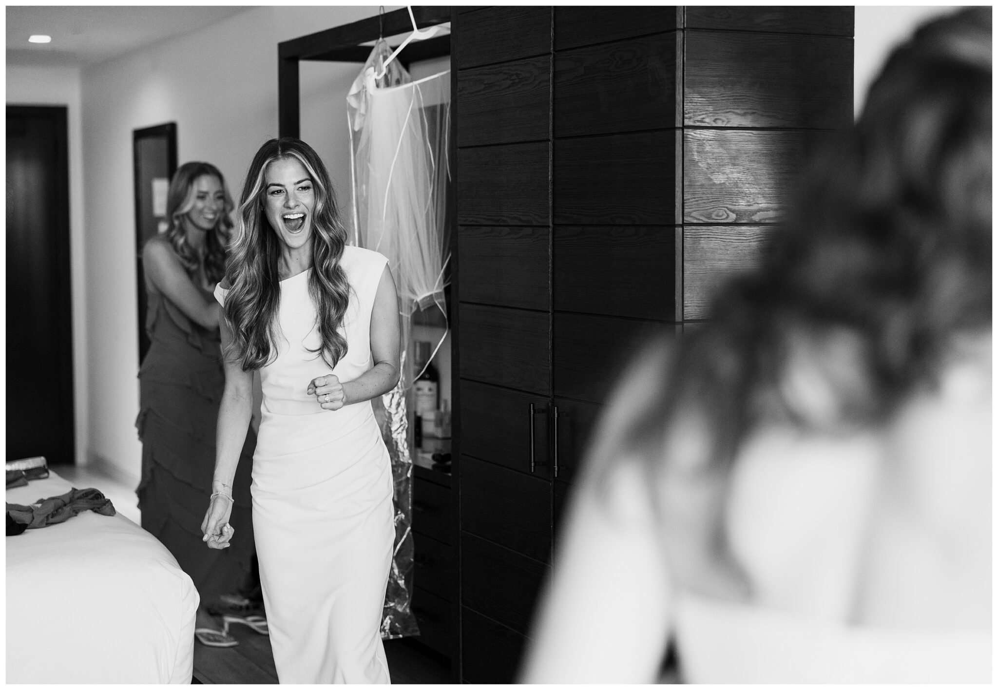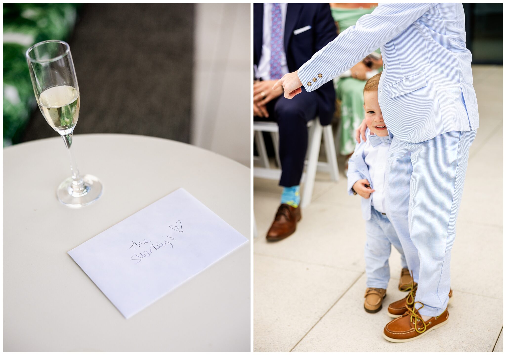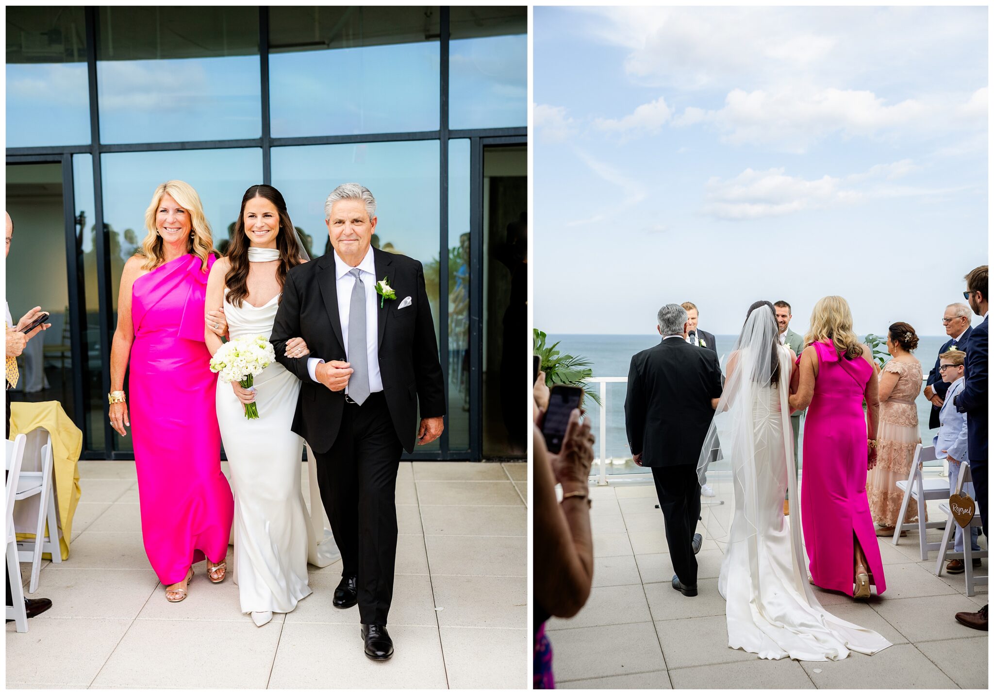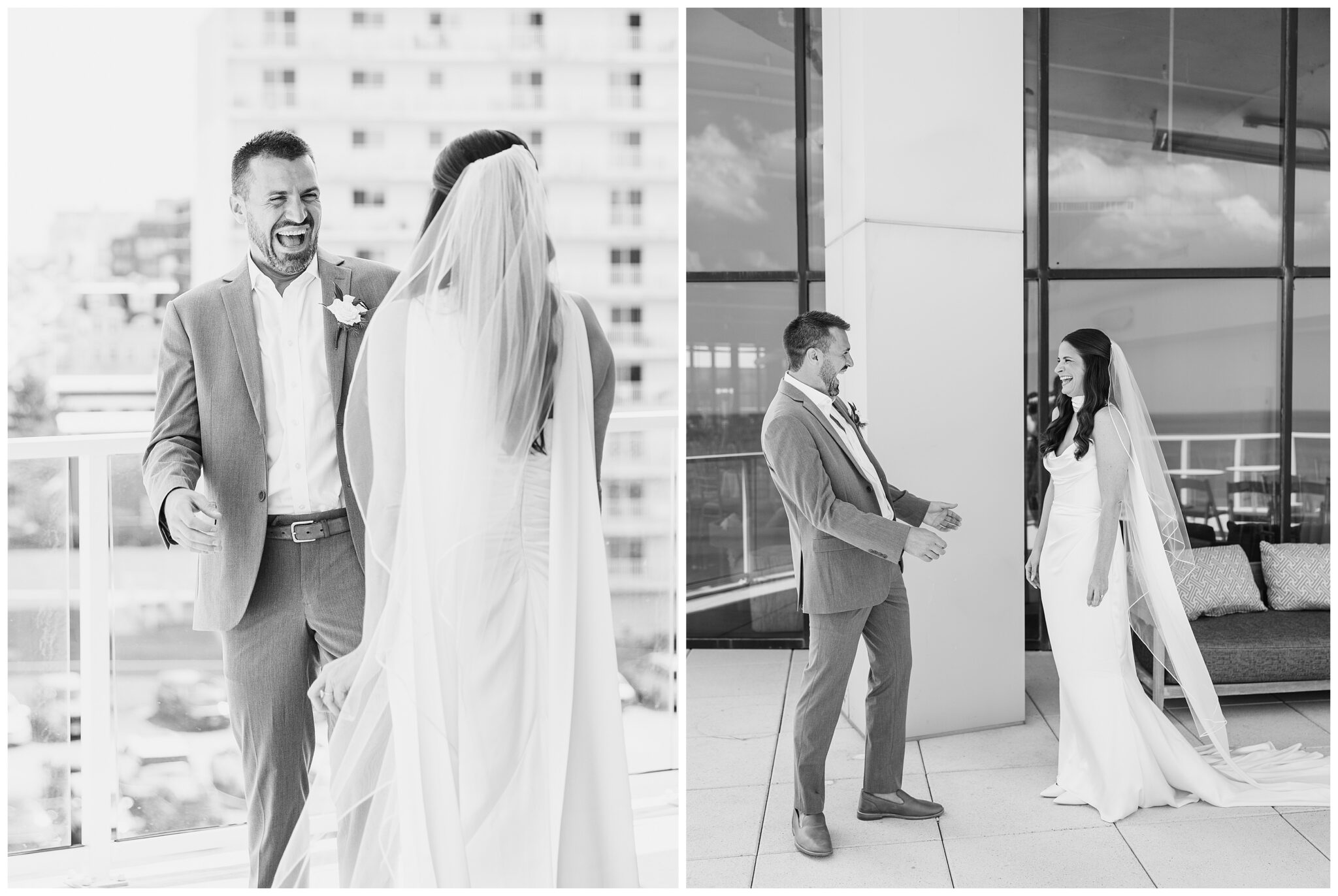 The design and style of the day perfectly matched the setting. Brian’s linen suit felt effortlessly coastal and elevated, while Caroline stunned in a sleek bridal look before changing into a chic second dress just before cake cutting. We captured so many of their portraits at the resort’s signature bar — a space with a fun, Miami-inspired feel that couldn’t have been more “them.” From the oceanfront views to the modern design, this Long Branch, NJ beach wedding was the perfect blend of relaxed and celebratory.