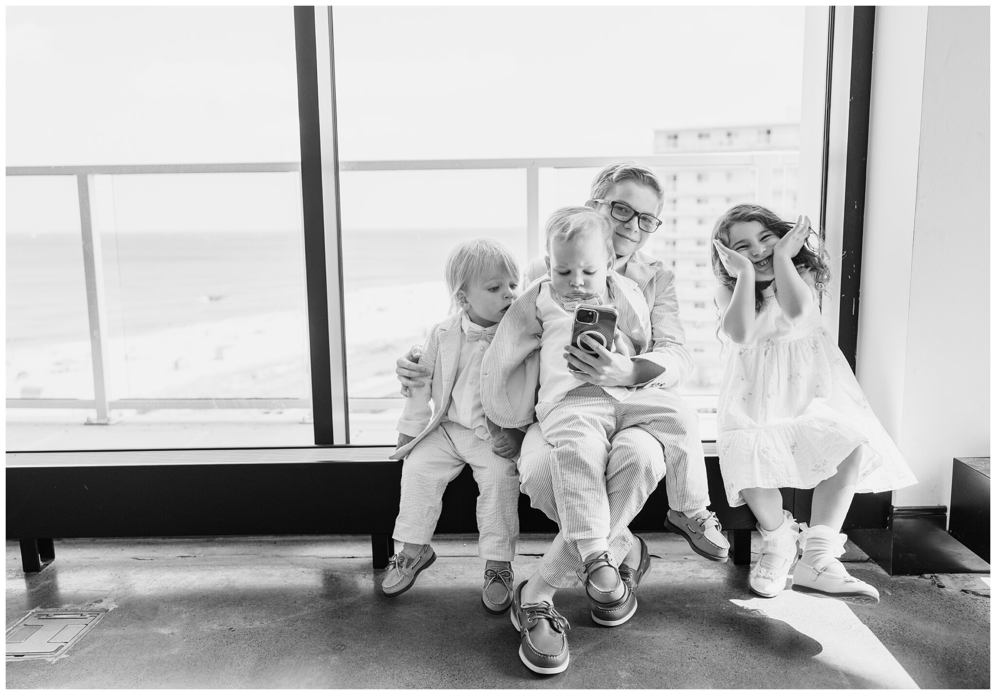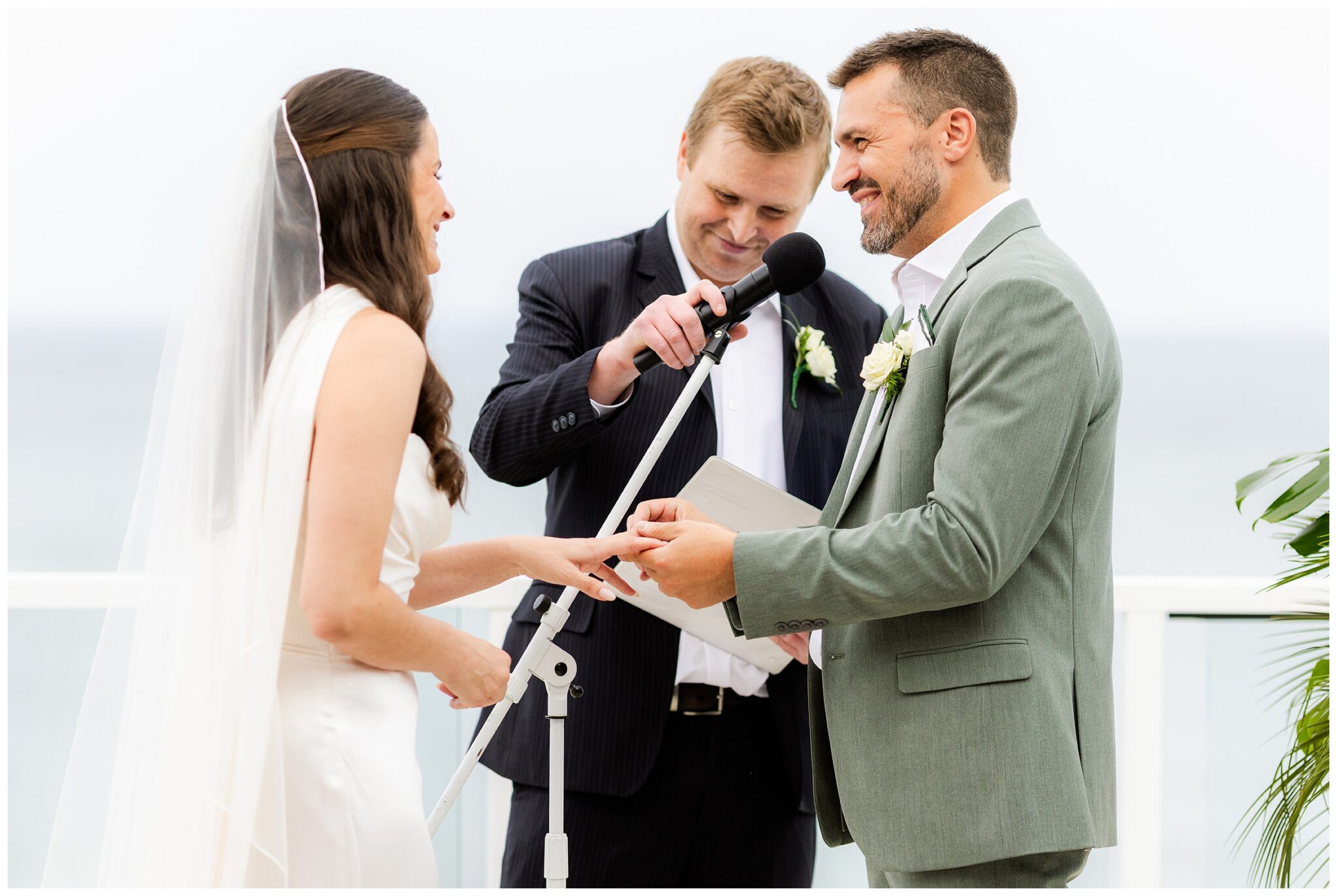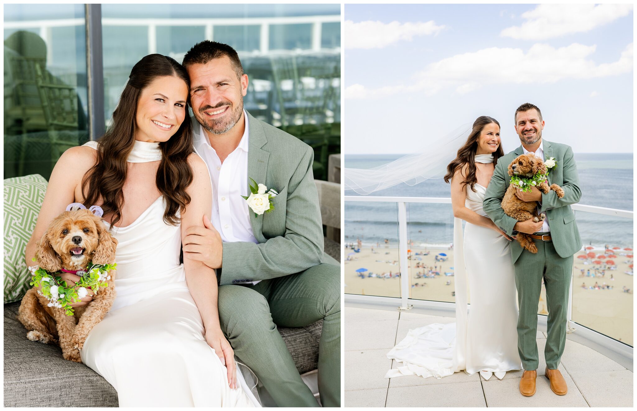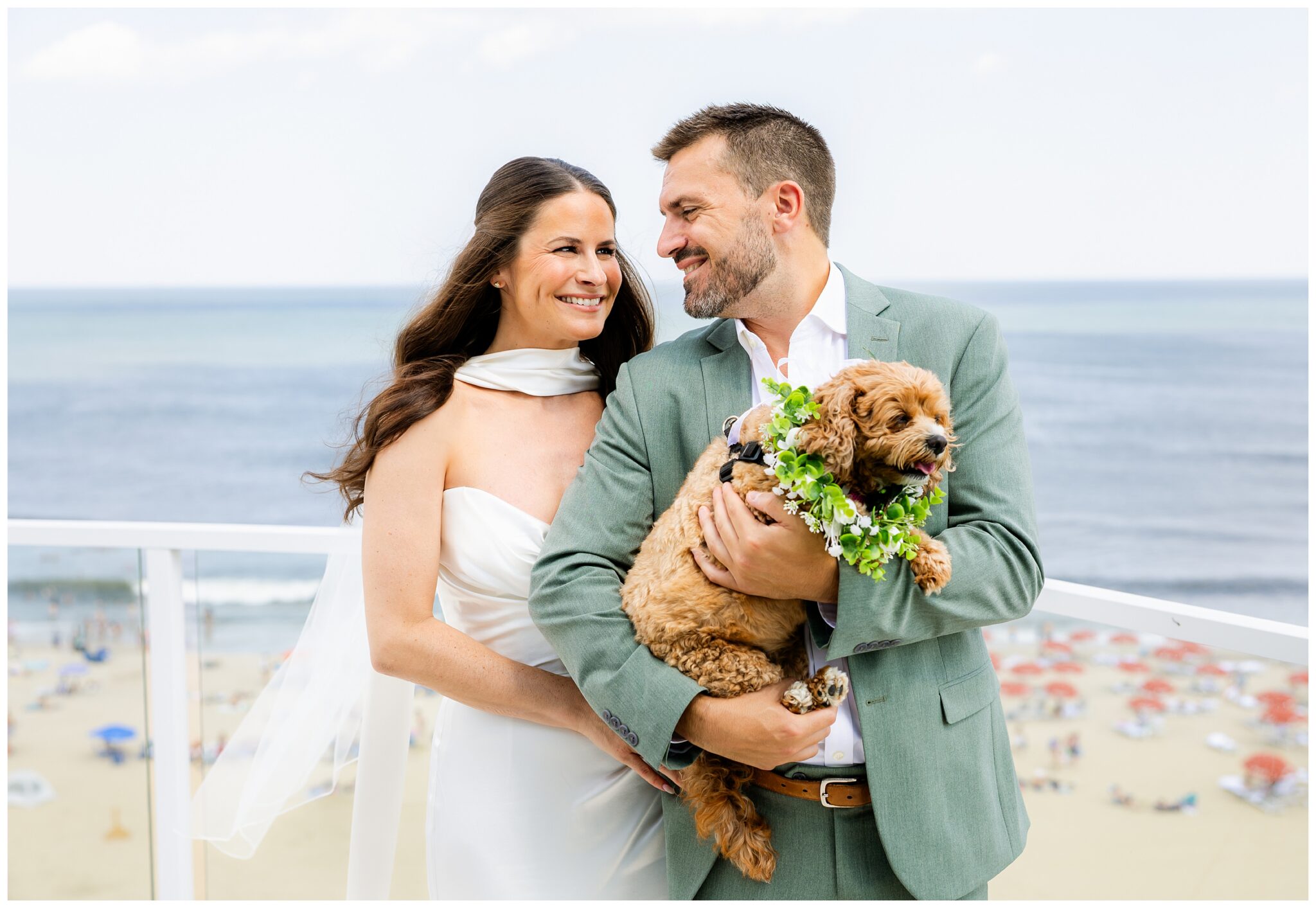 Caroline and Brian’s wedding at Wave Resort was the ultimate celebration of their love for the beach, the water, and a really good party. Affectionately becoming “The Sharkeys,” these two brought the best energy from start to finish. The day began with Caroline getting ready alongside her sweet pup Zoey — who made the cutest appearance during portraits wearing a floral wreath — before heading into a heartfelt, intimate ceremony officiated by a close friend. With no formal bridal party, they were surrounded by their closest friends and family all day long, making every moment feel personal and full of connection.