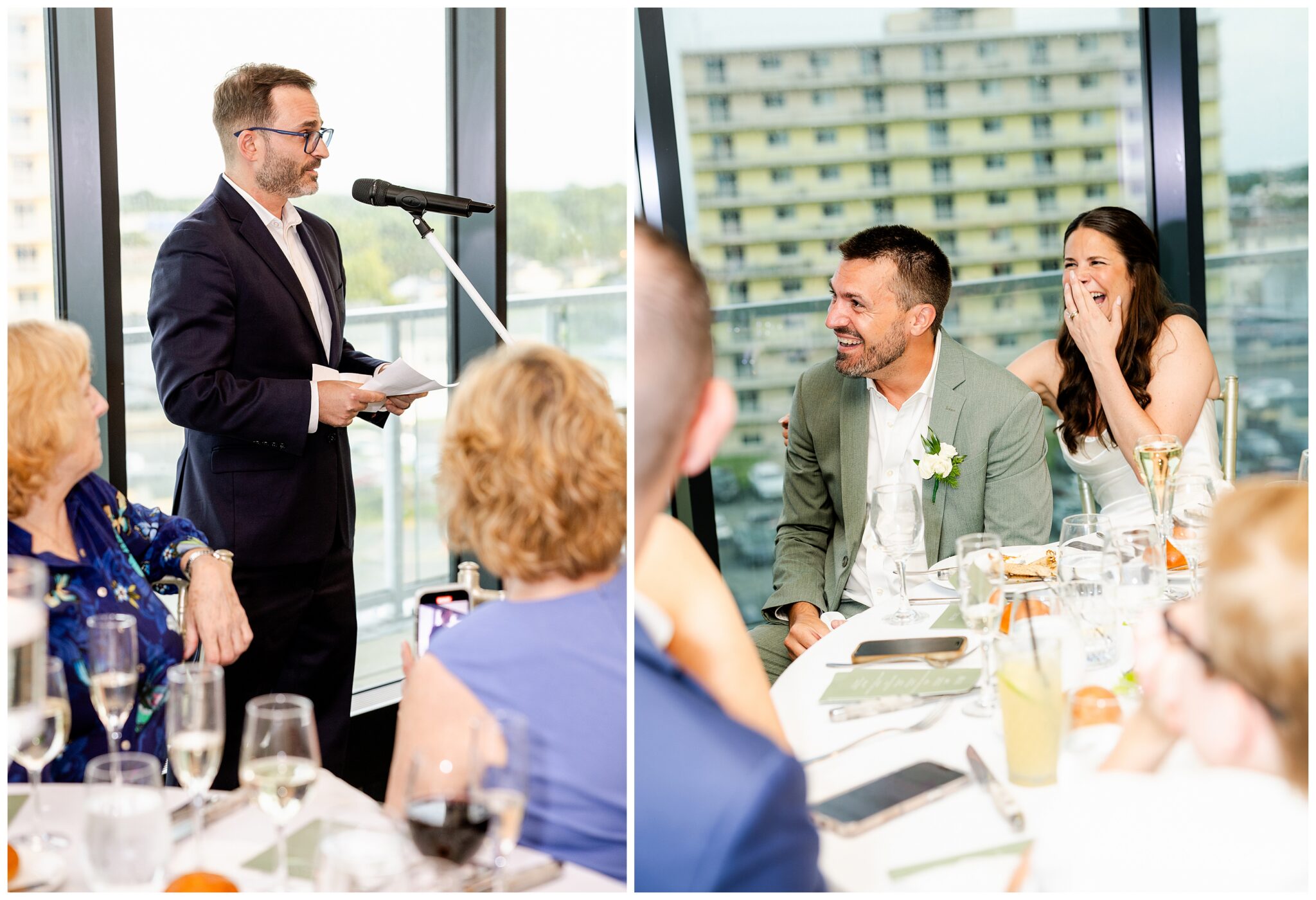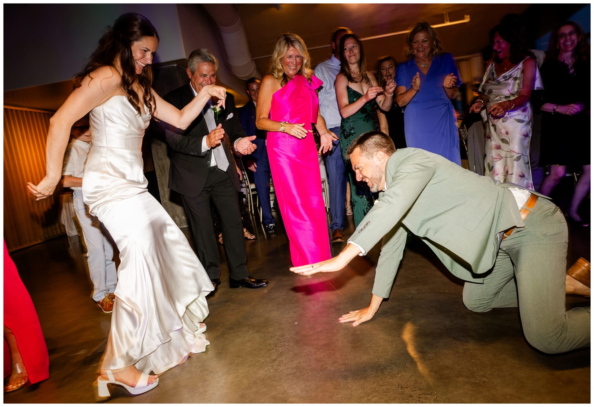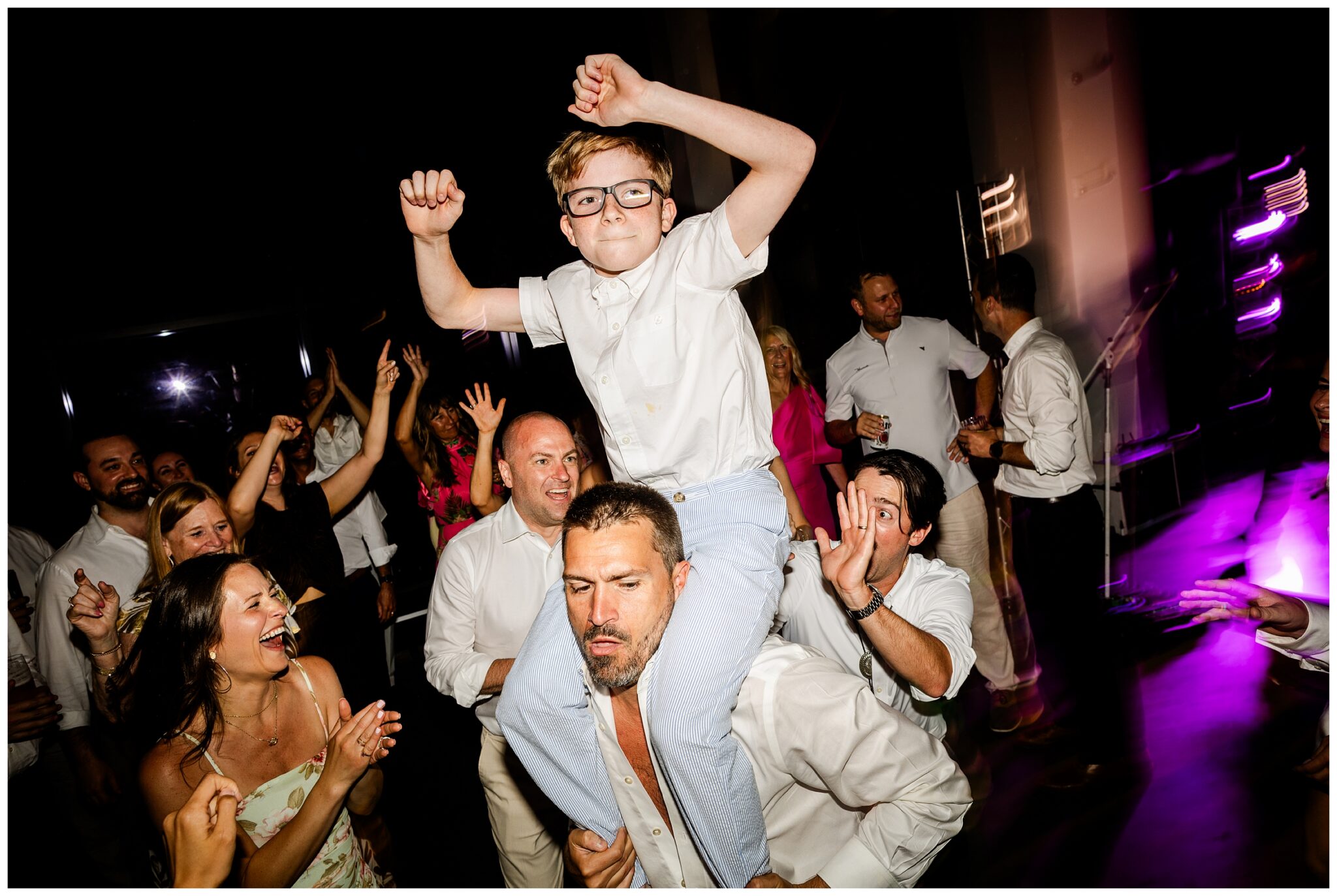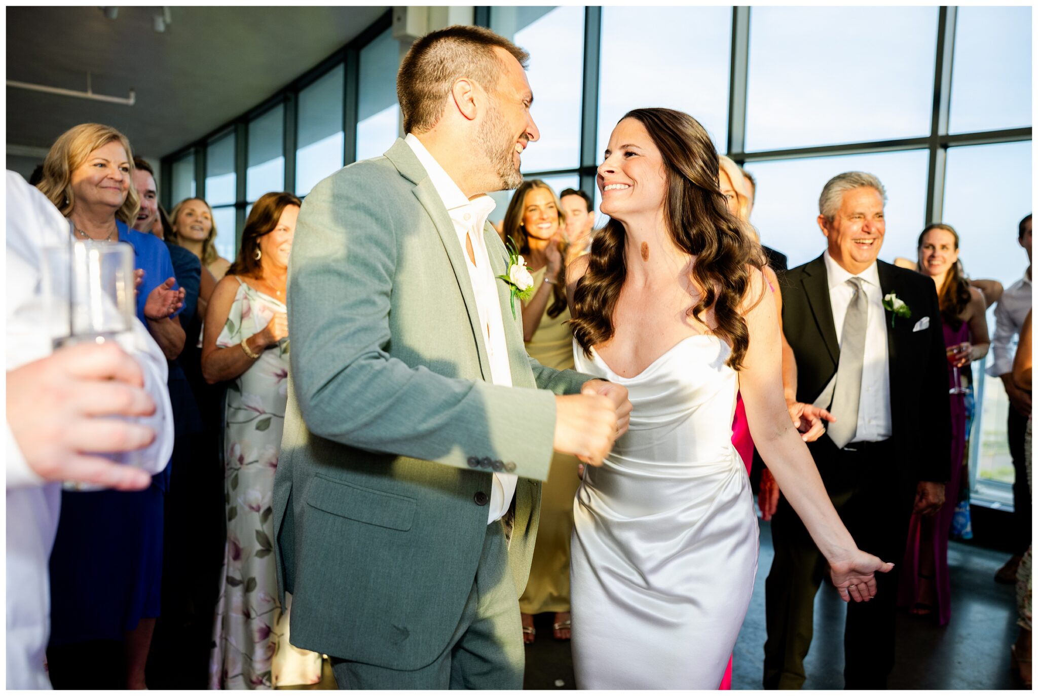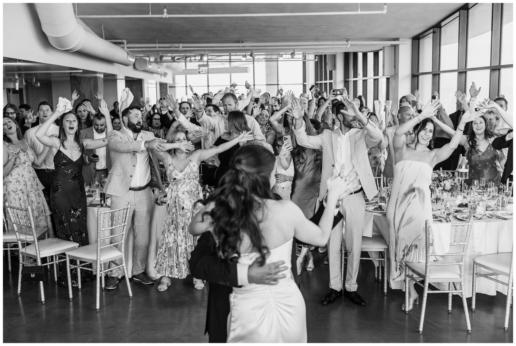 From the moment they were introduced into their reception, the energy was absolutely electric — and it never dipped. Their band kept the dance floor packed all night (something they had been looking forward to all day!), and Brian and Caroline truly set the tone for that dance floor, bringing unmatched enthusiasm that every guest rose to meet. One of the most memorable moments of the night was Caroline’s dance with her dad to Sweet Caroline, when the entire room joined in with “bum bum bum” and waving hands — pure joy in its truest form. Between nonstop laughter during speeches, high-energy dancing, and so many heartfelt moments, Caroline and Brian’s Wave Resort wedding was a celebration that felt as fun as it was meaningful — a perfect start to life as The Sharkeys.